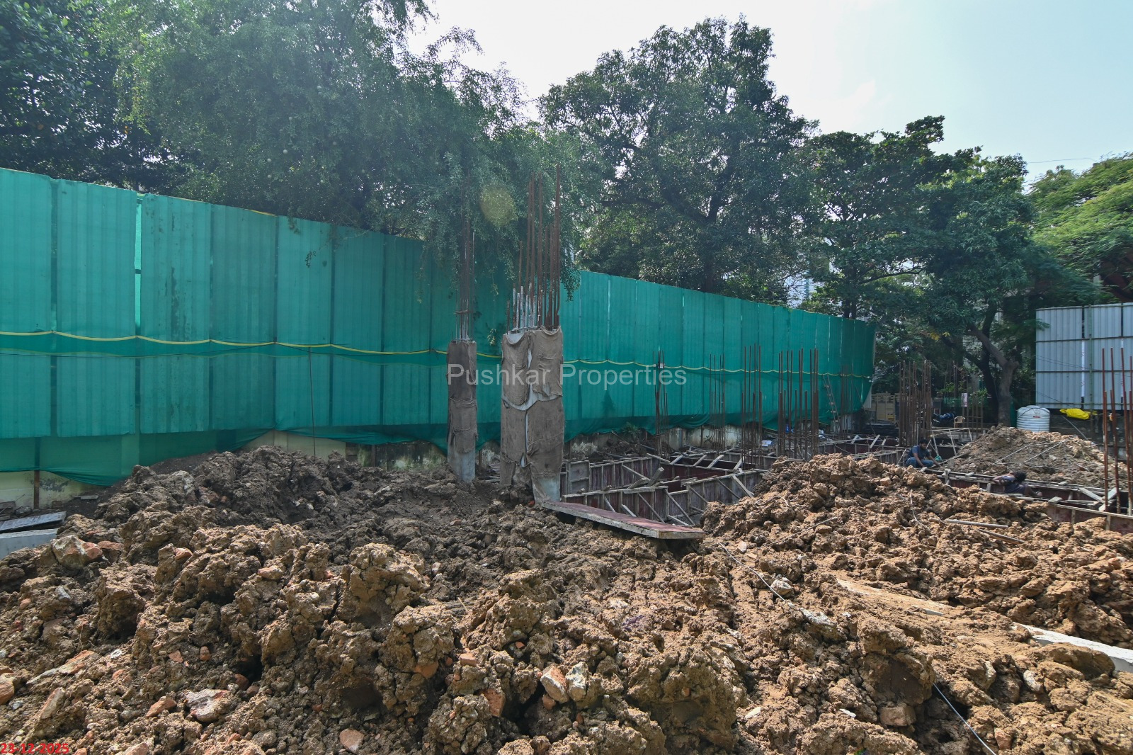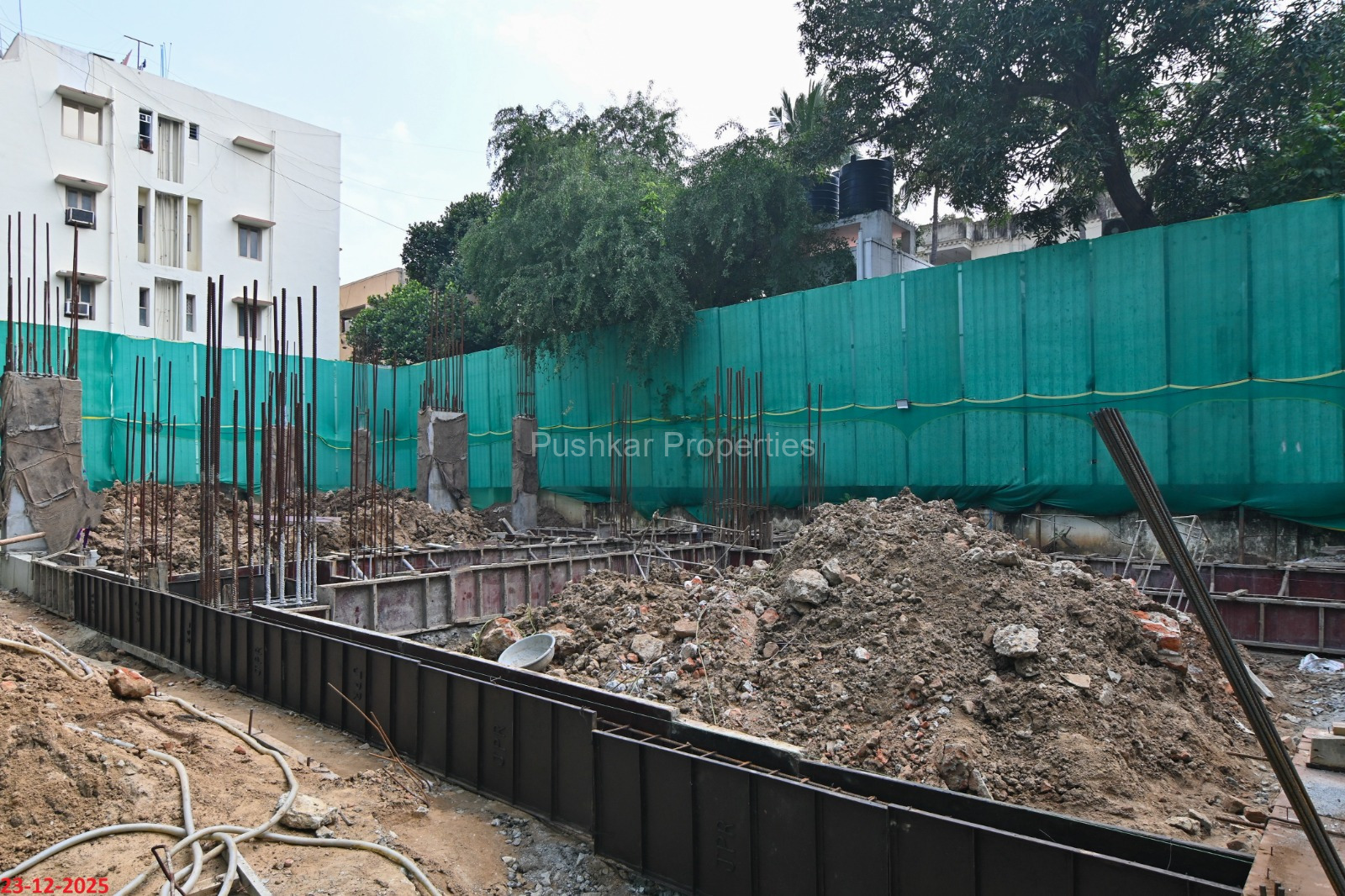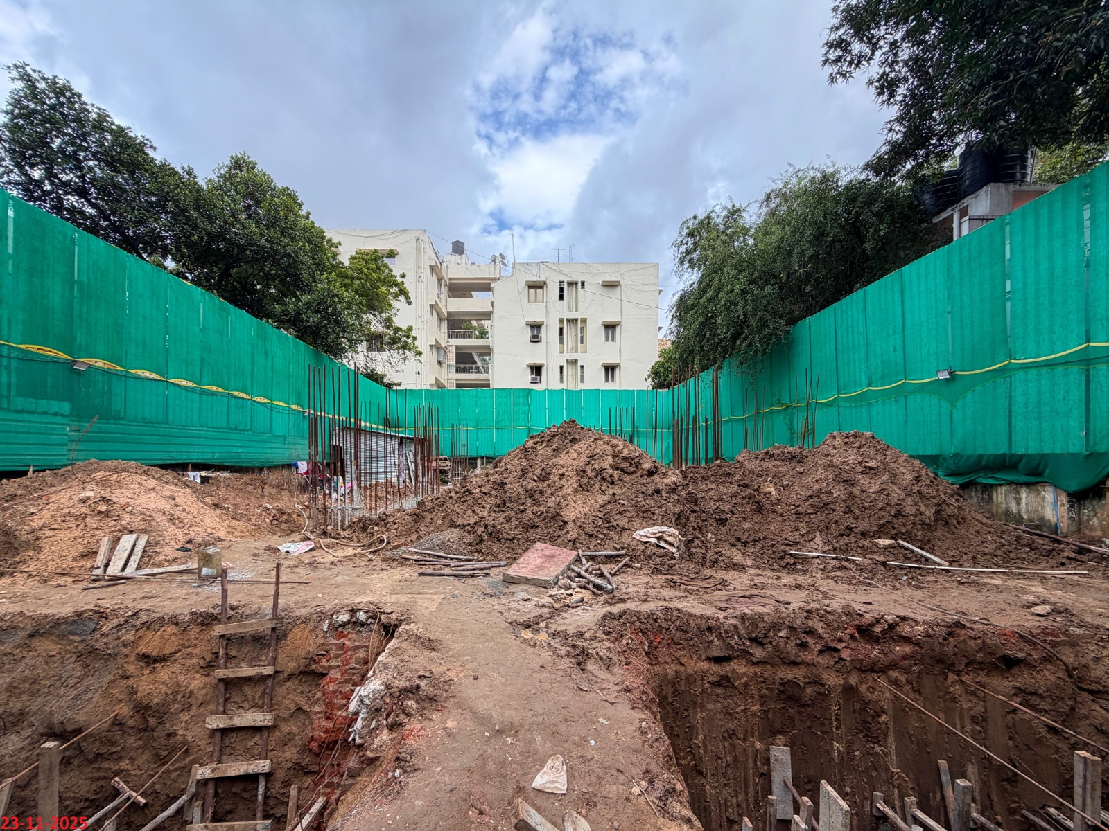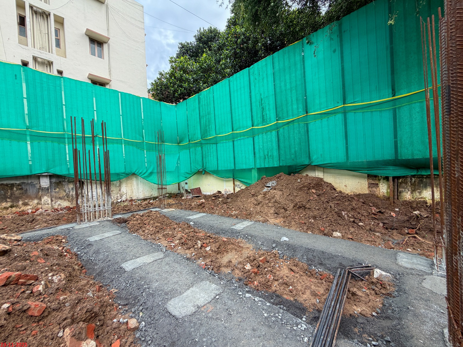 - Basement filling with filling soil, topped and consolidated with 6” inches of M. Sand and 6” inches of P.C.C with a mix ratio of 1:4:8.