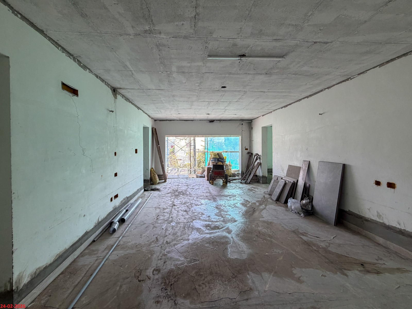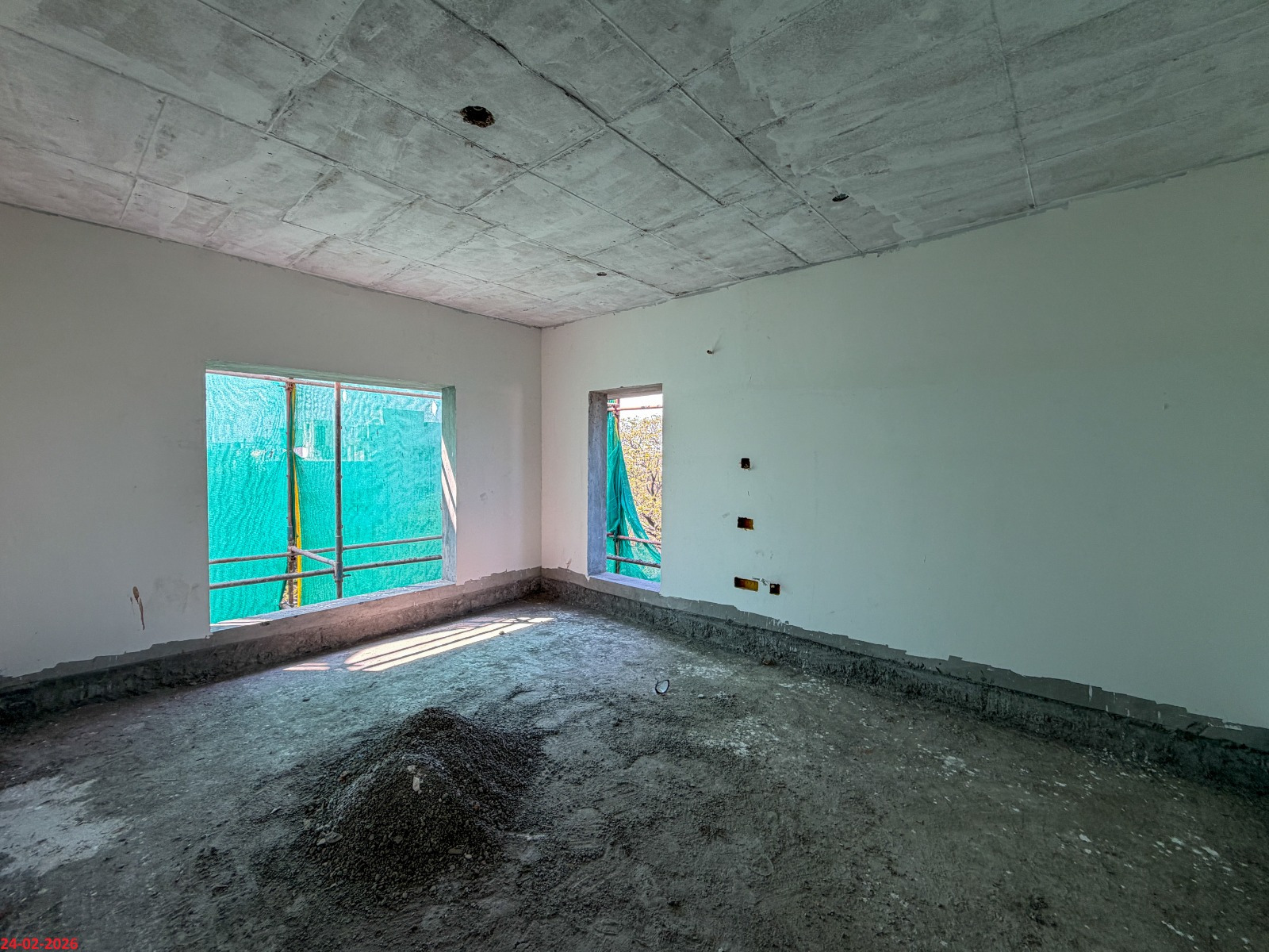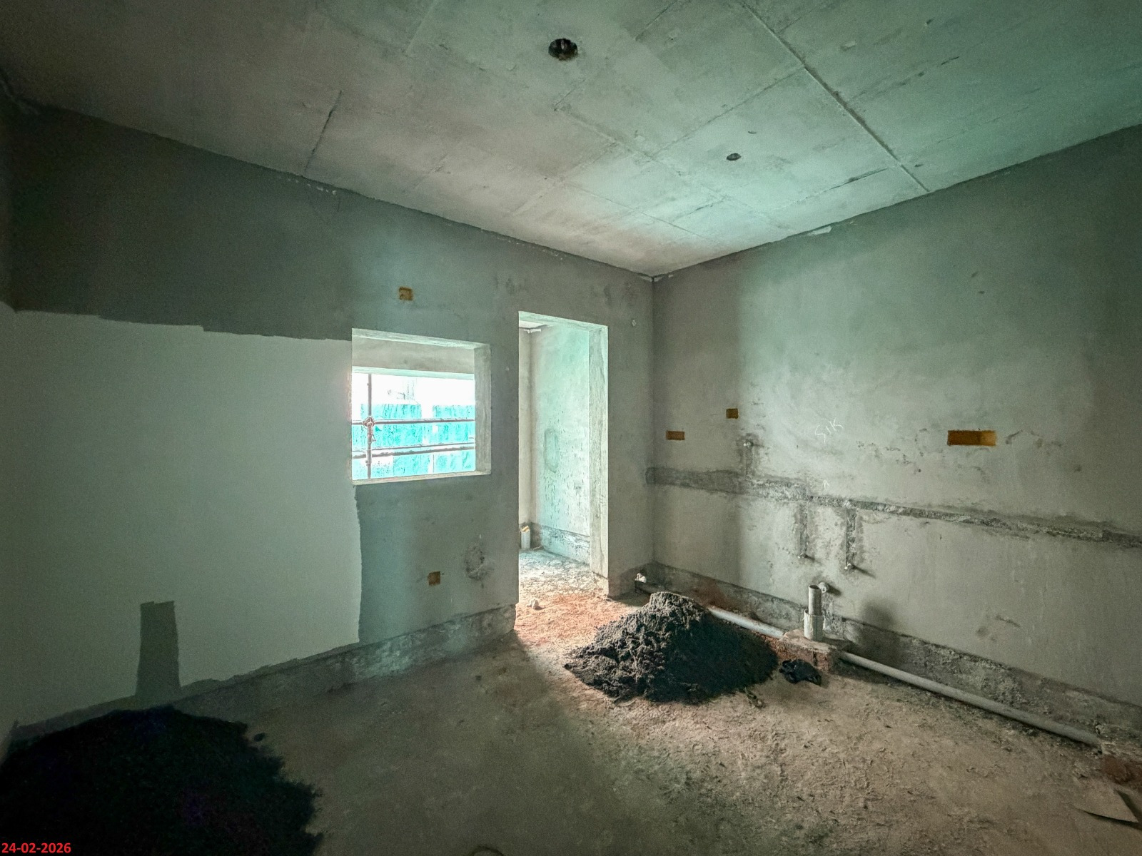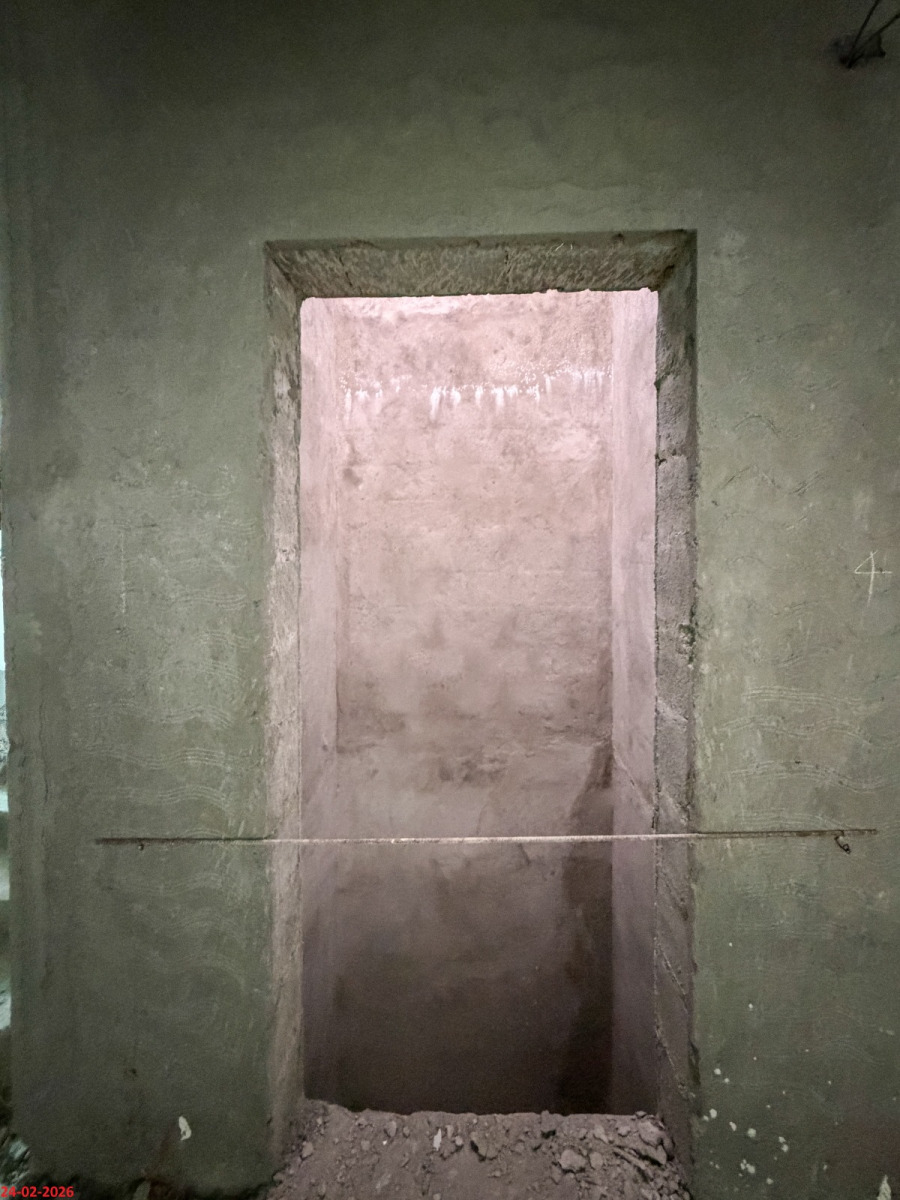 - Basement filling with filling soil, topped and consolidated with 6” inches of M. Sand and 6” inches of P.C.C with a mix ratio of 1:4:8.