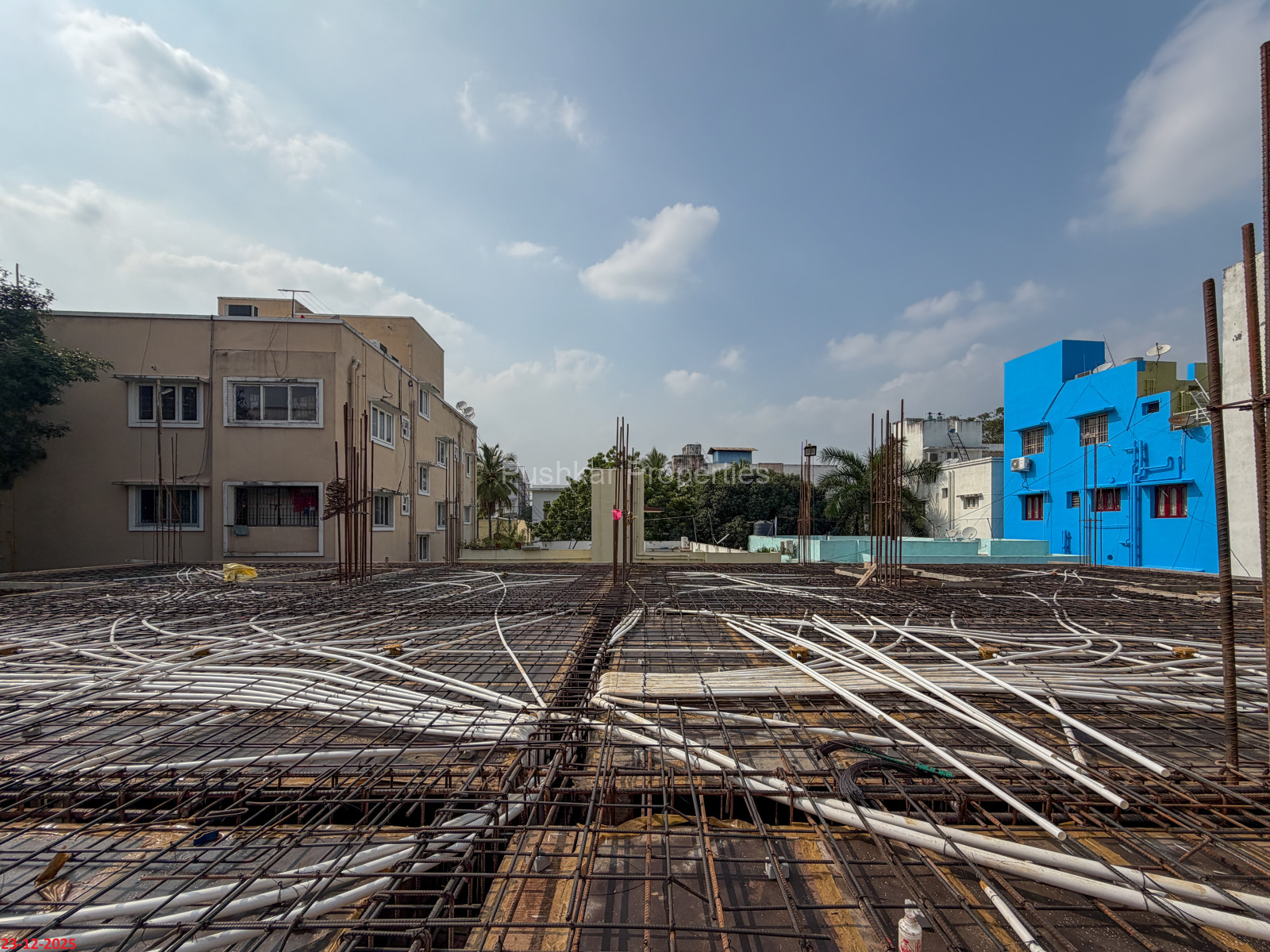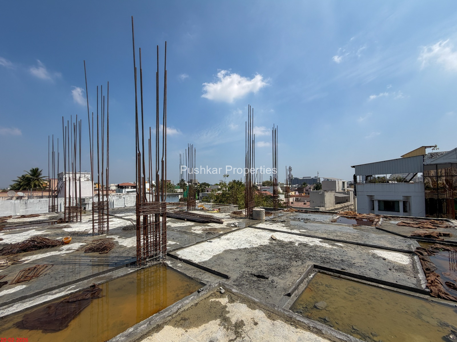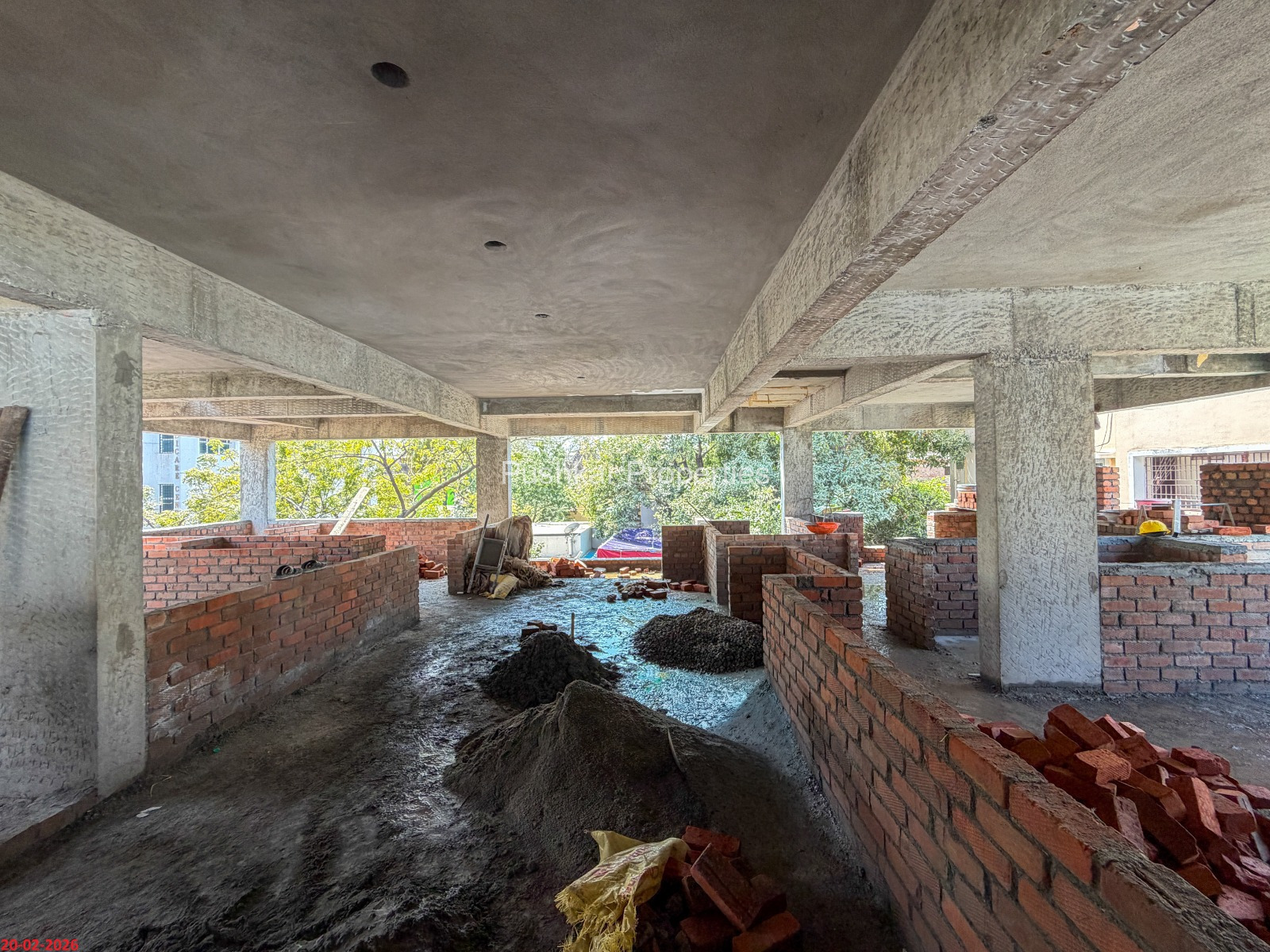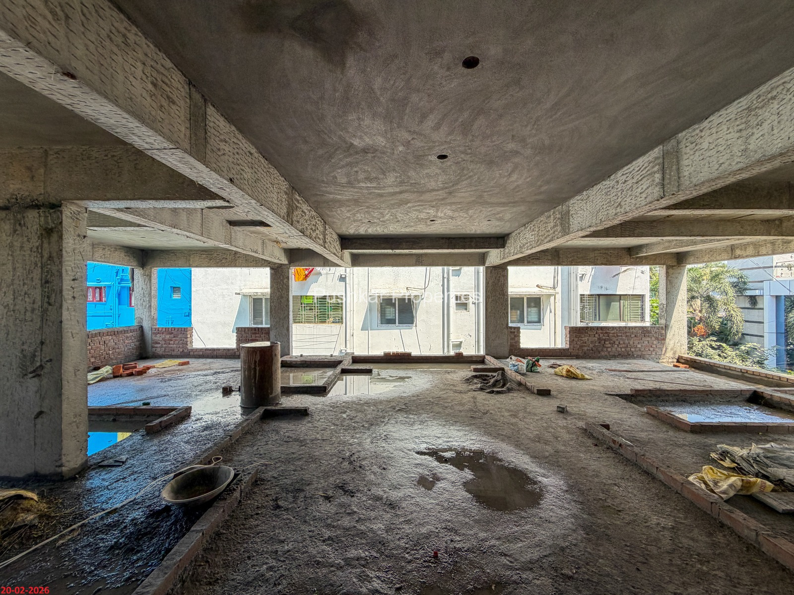 - Basement filling with filling soil, topped and consolidated with 6” inches of M. Sand and 6” inches of P.C.C with a mix ratio of 1:4:8.