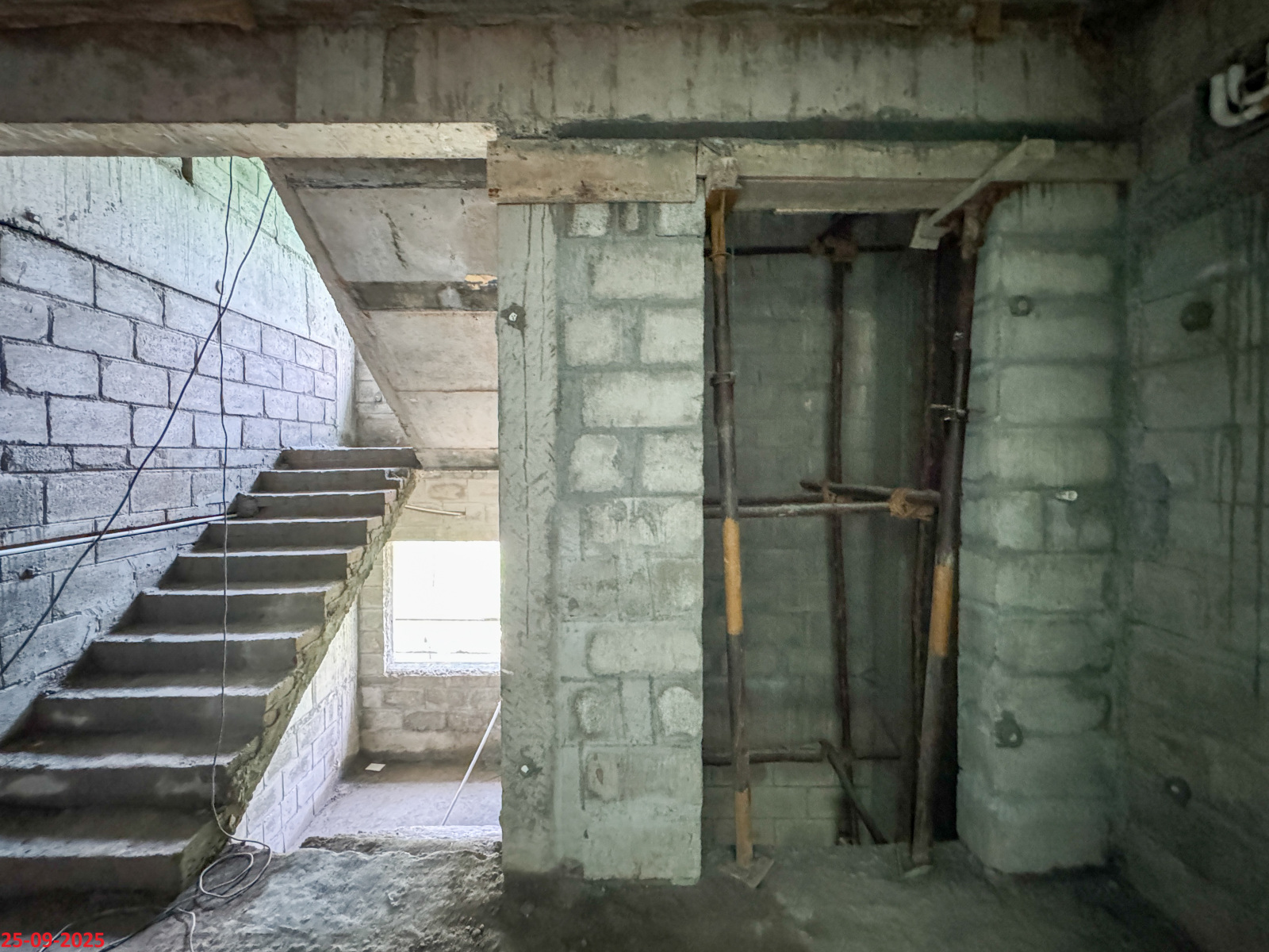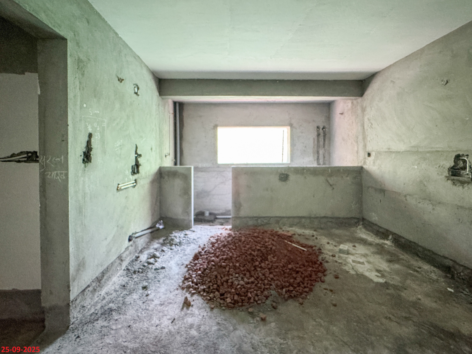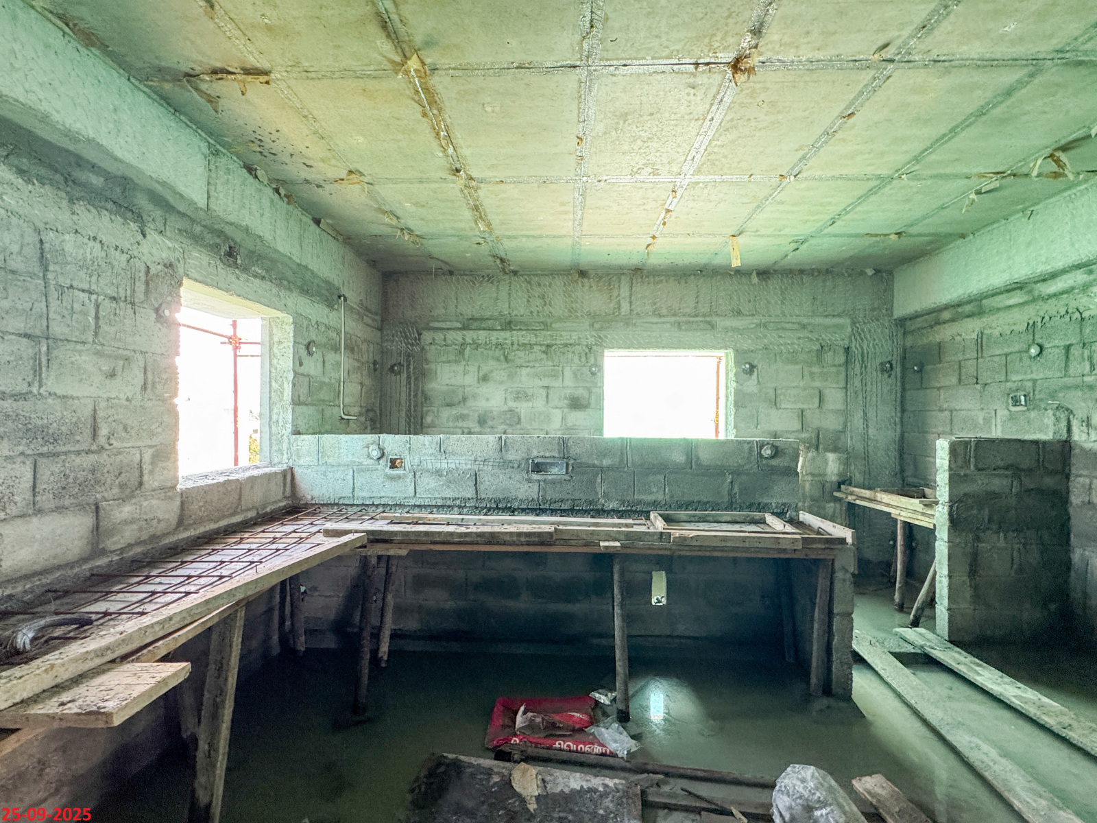- Basement filling with filling soil, topped and consolidated with 6” inches of M. Sand and 6” inches of P.C.C with a mix ratio of 1:4:8.