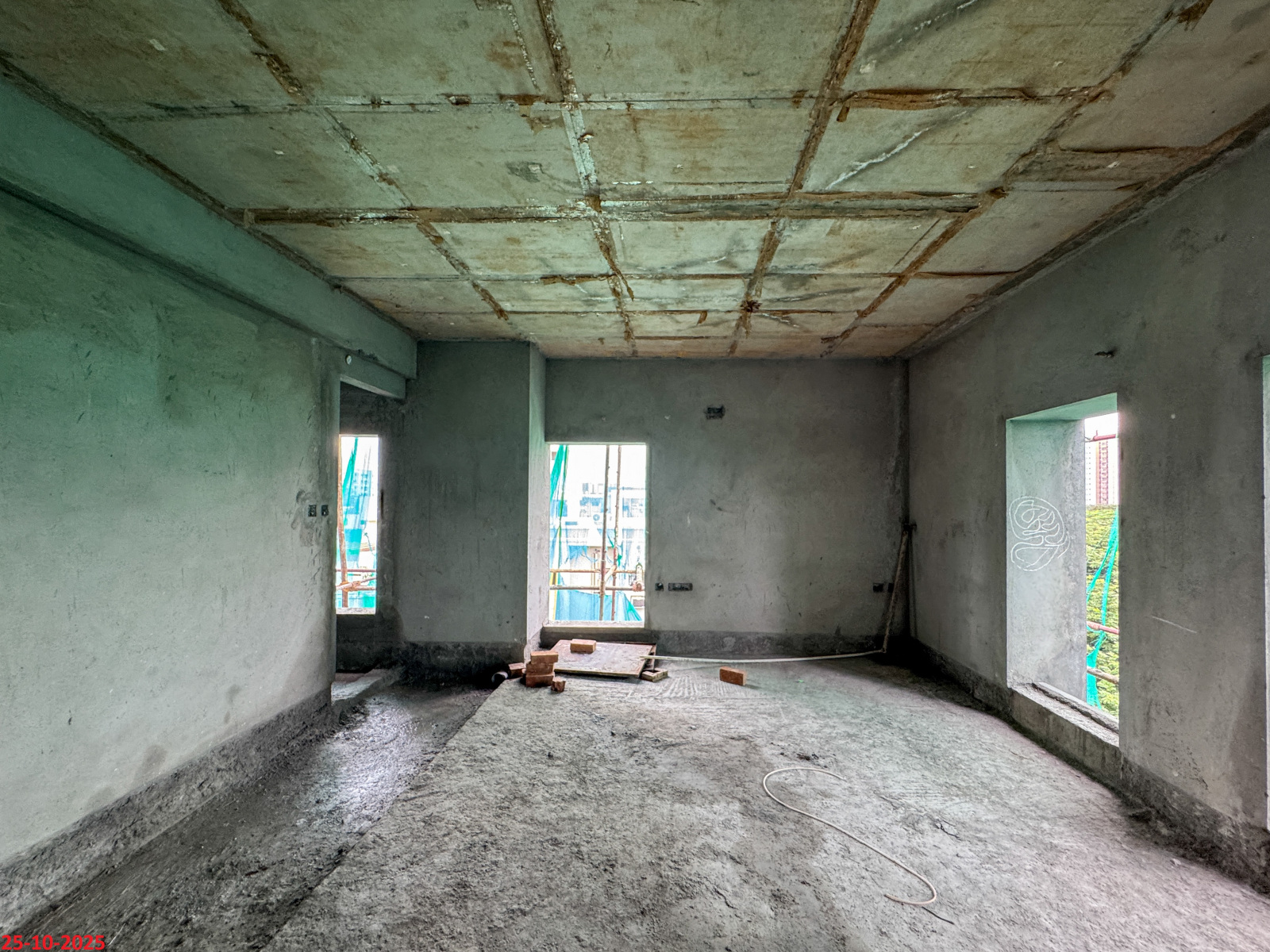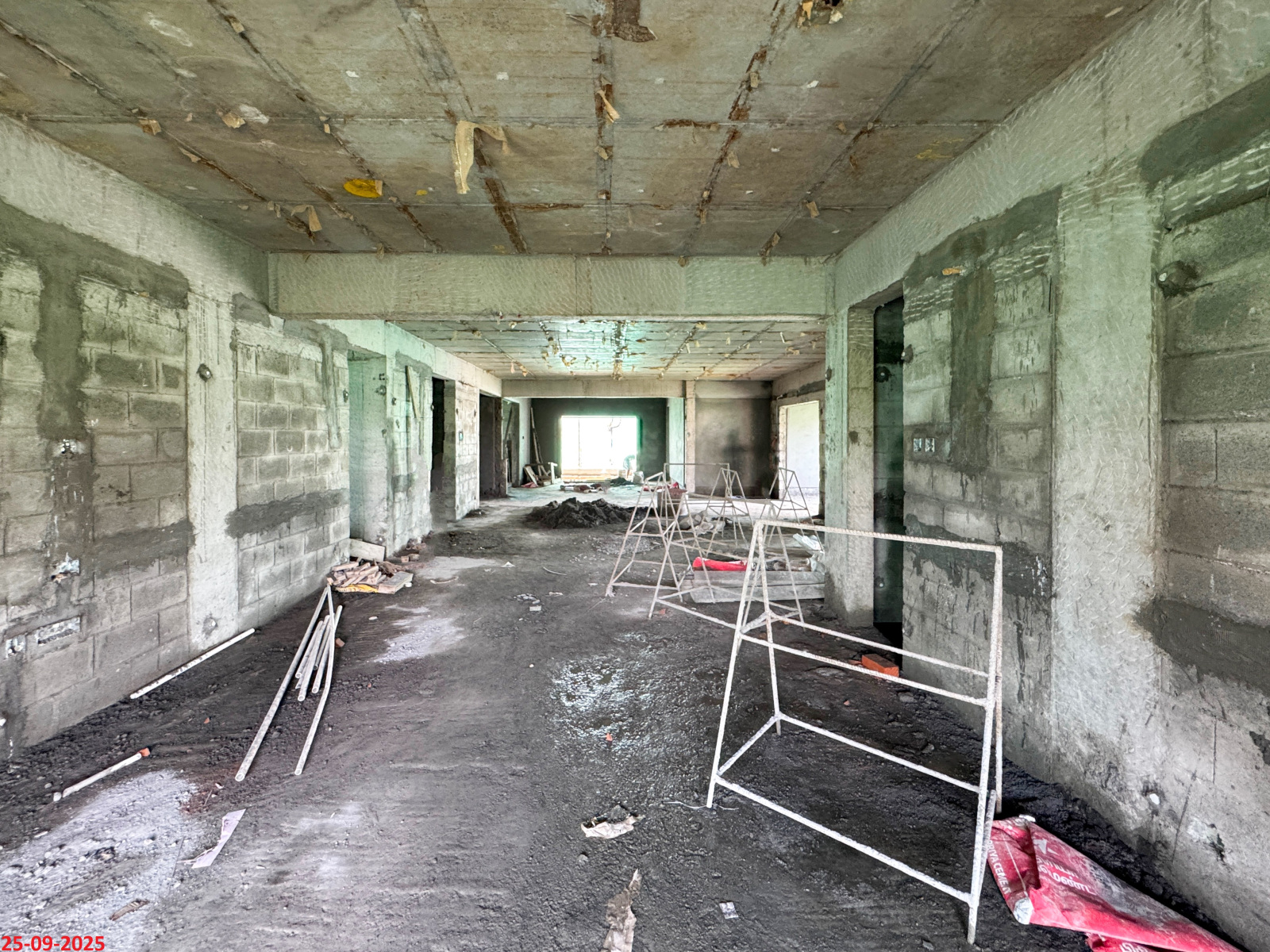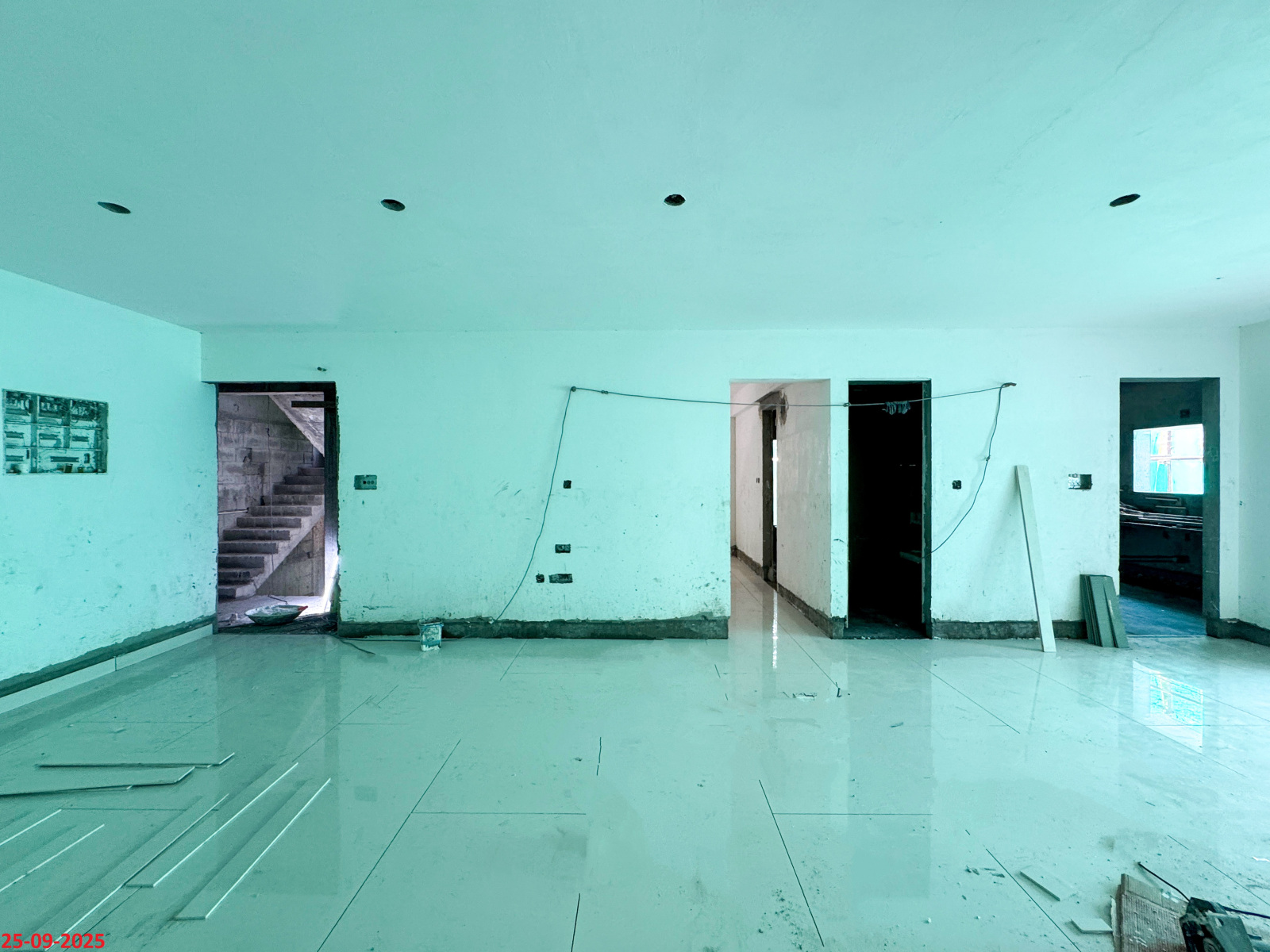 - Basement filling with filling soil, topped and consolidated with 6” inches of M. Sand and 6” inches of P.C.C with a mix ratio of 1:4:8.