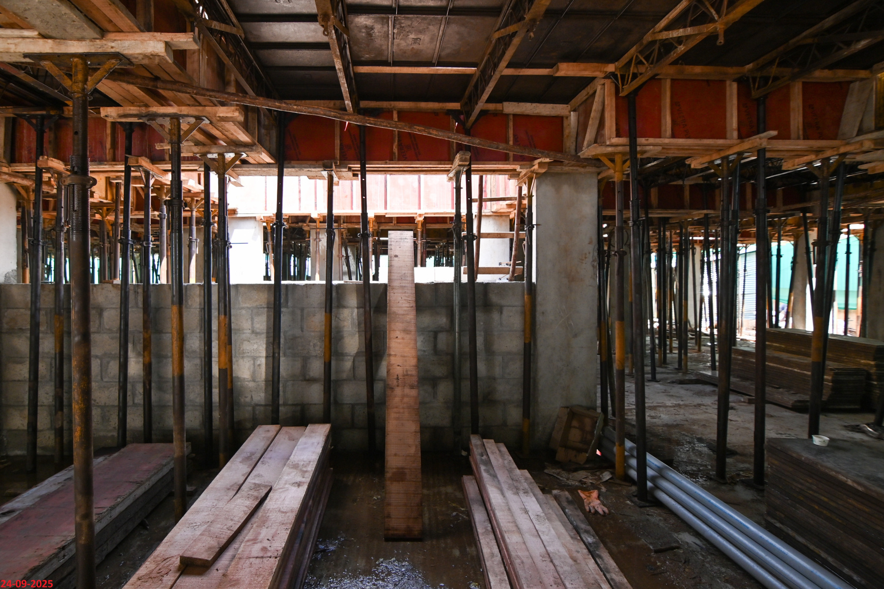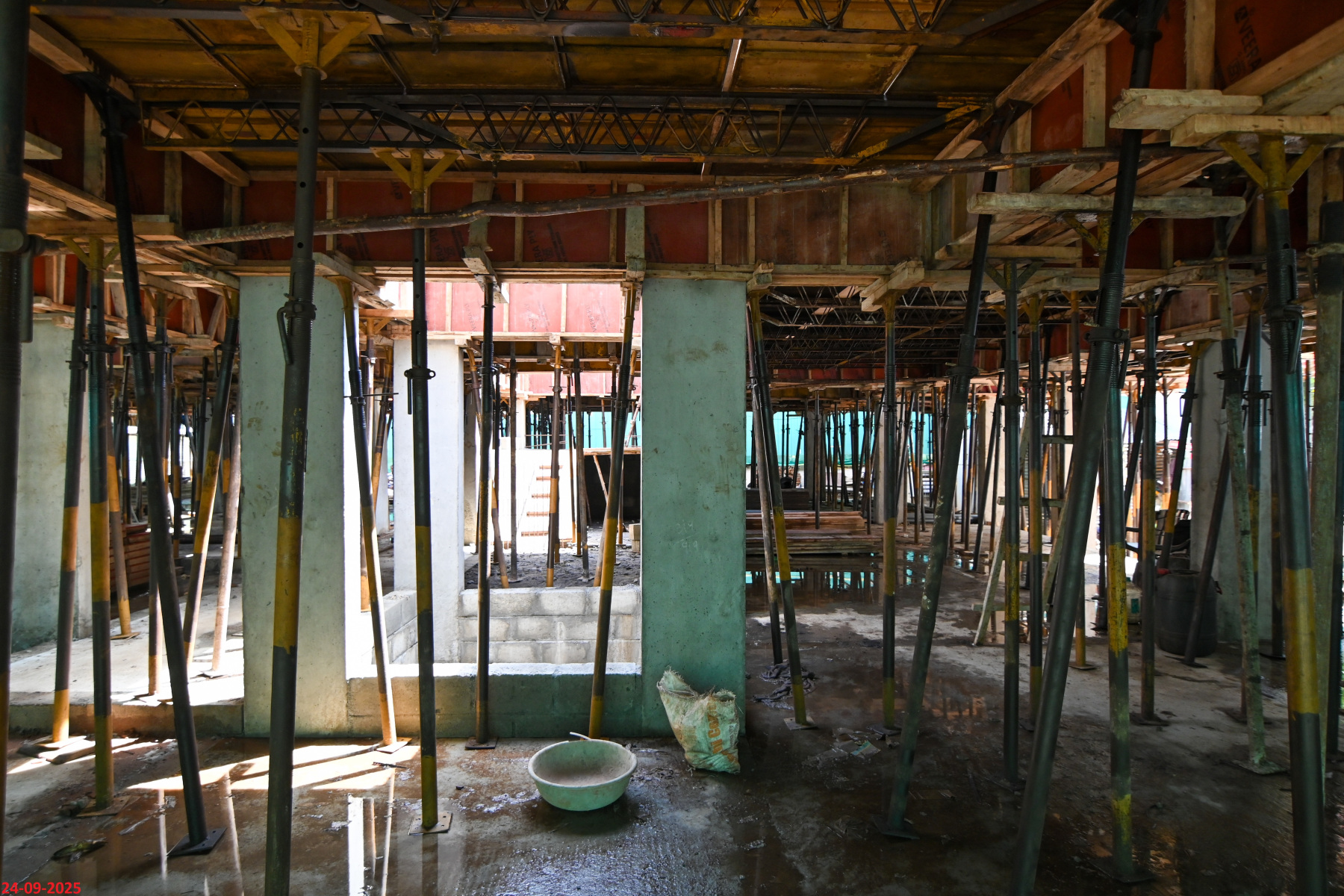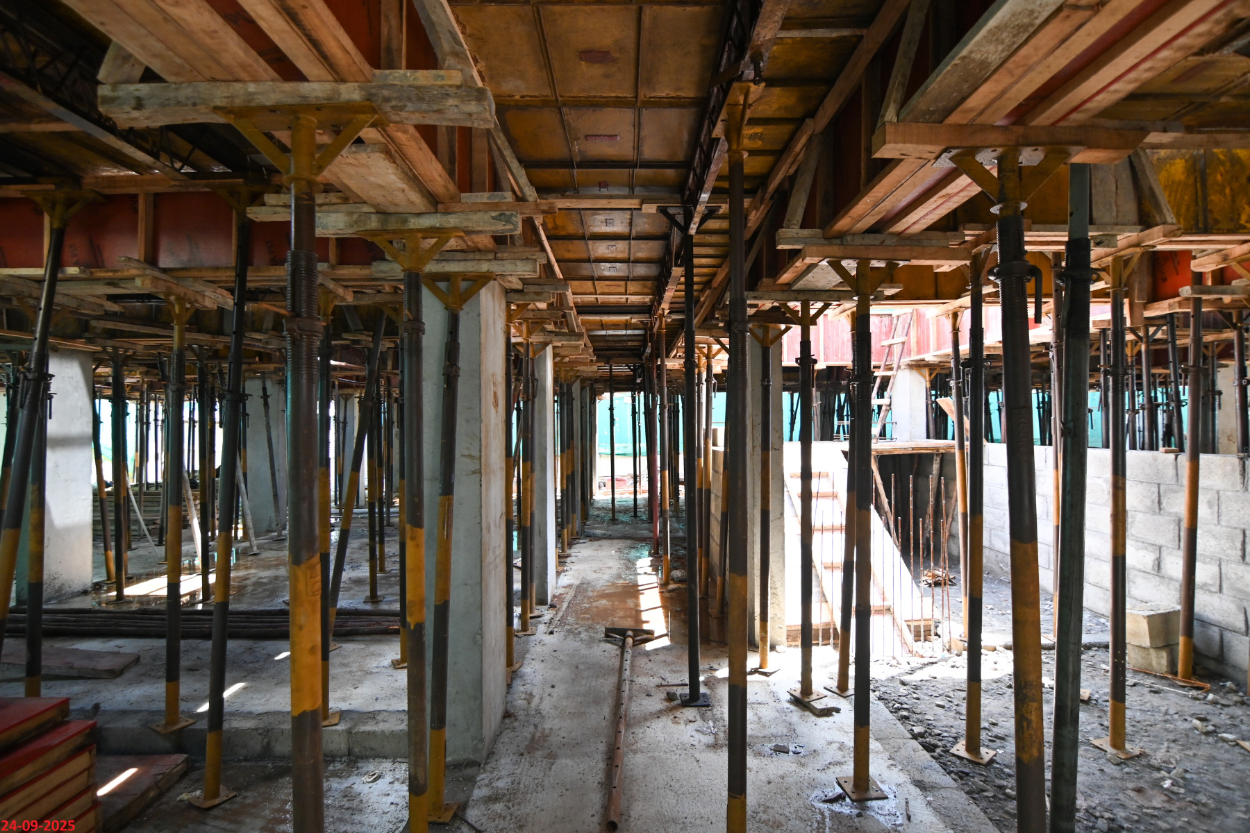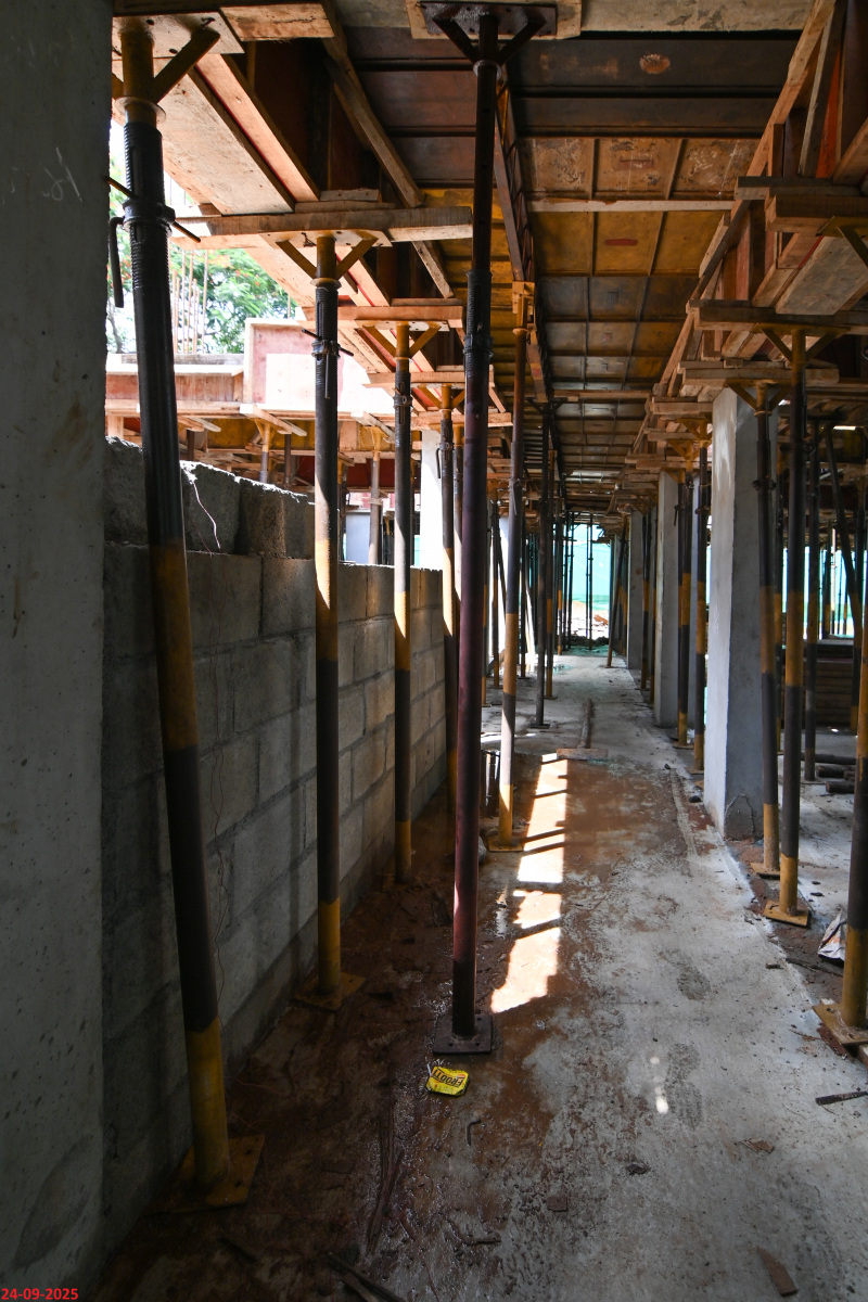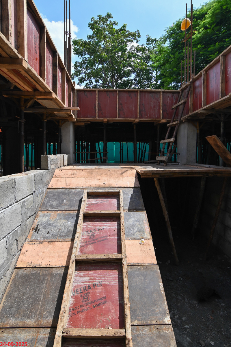 - Basement filling with filling soil, topped and consolidated with 6” inches of M. Sand and 6” inches of P.C.C with a mix ratio of 1:4:8.