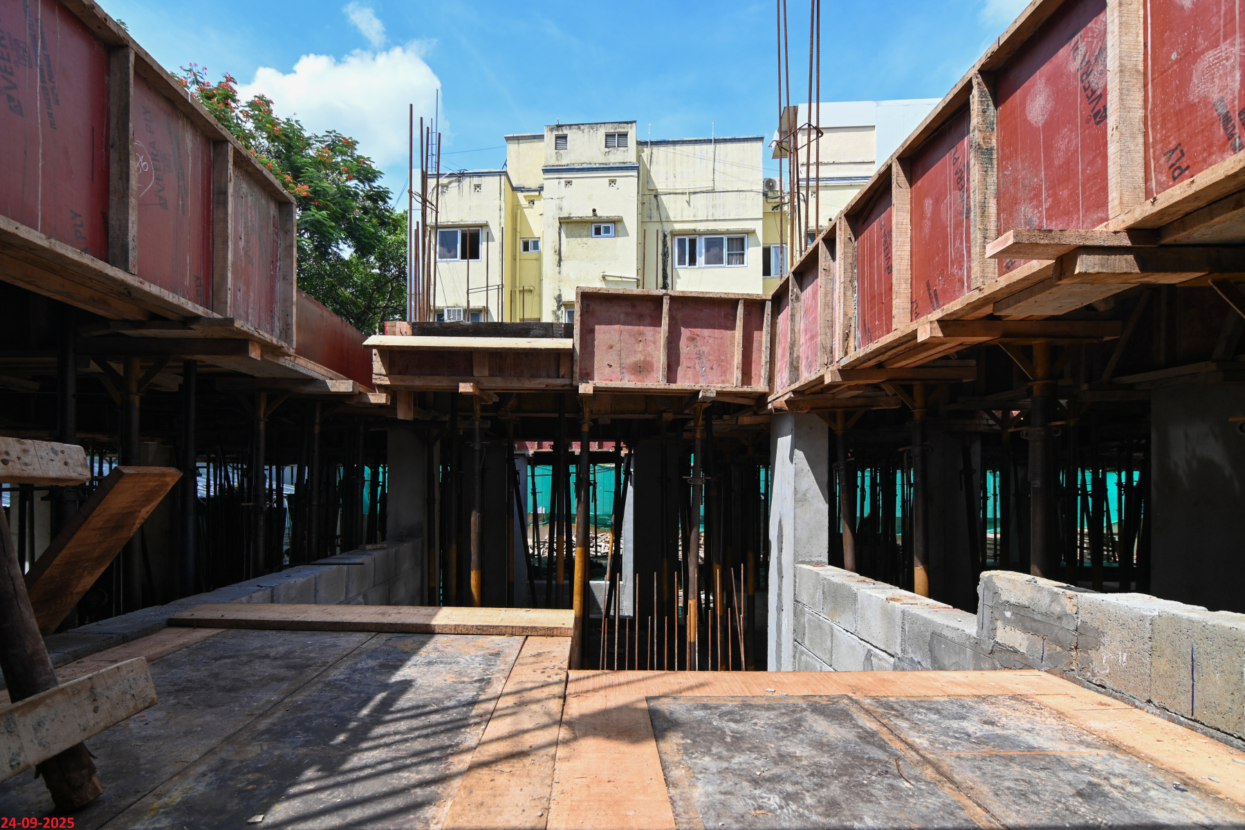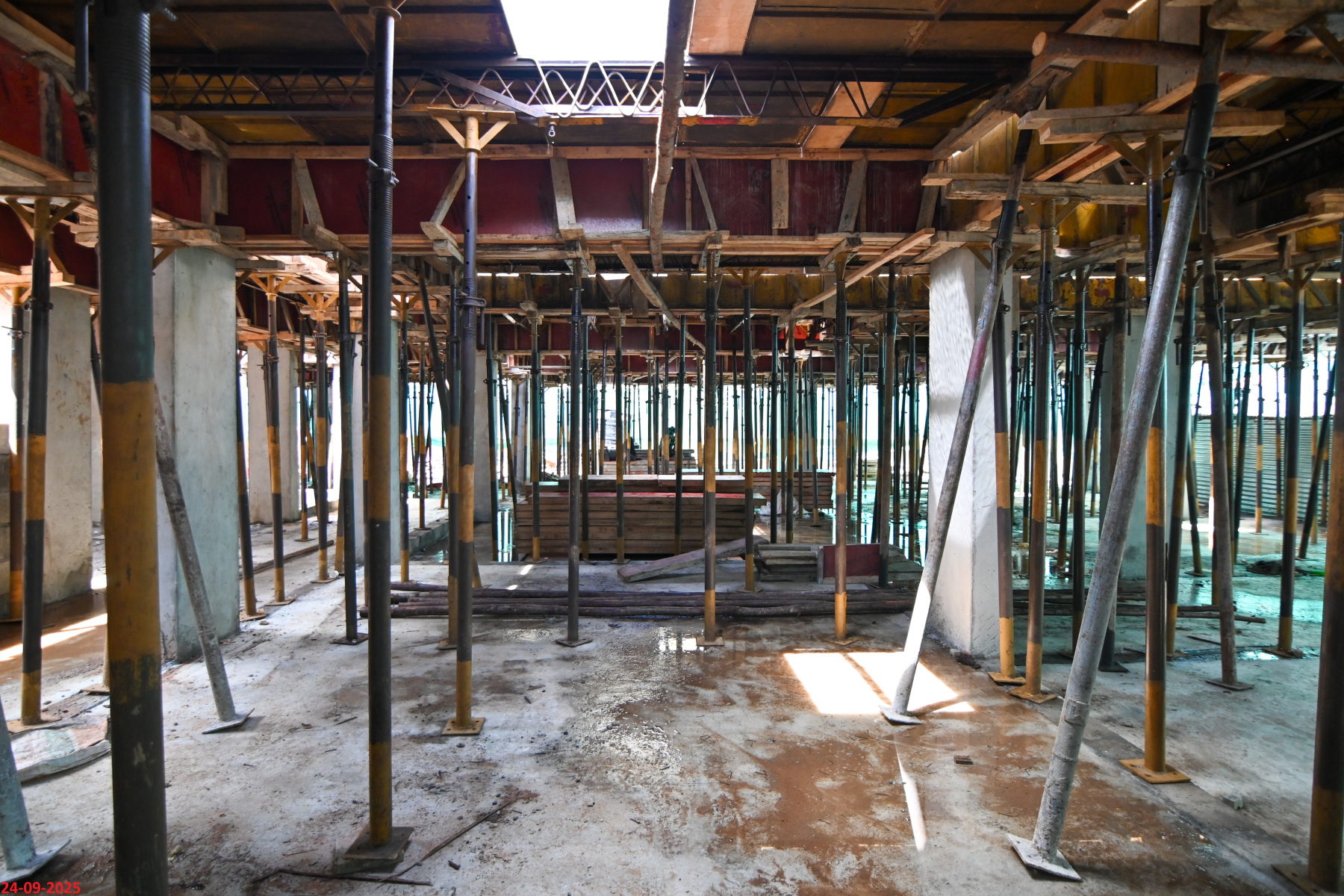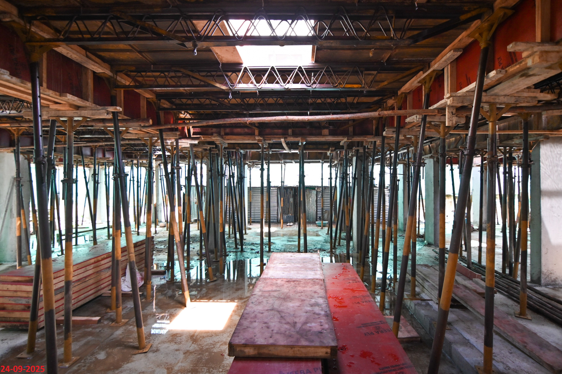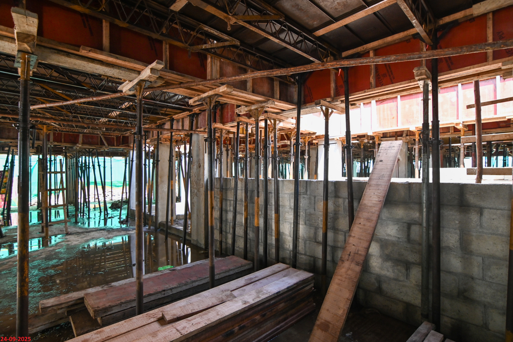 - Basement filling with filling soil, topped and consolidated with 6” inches of M. Sand and 6” inches of P.C.C with a mix ratio of 1:4:8.