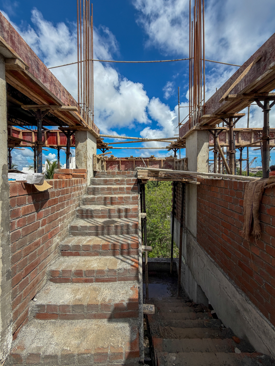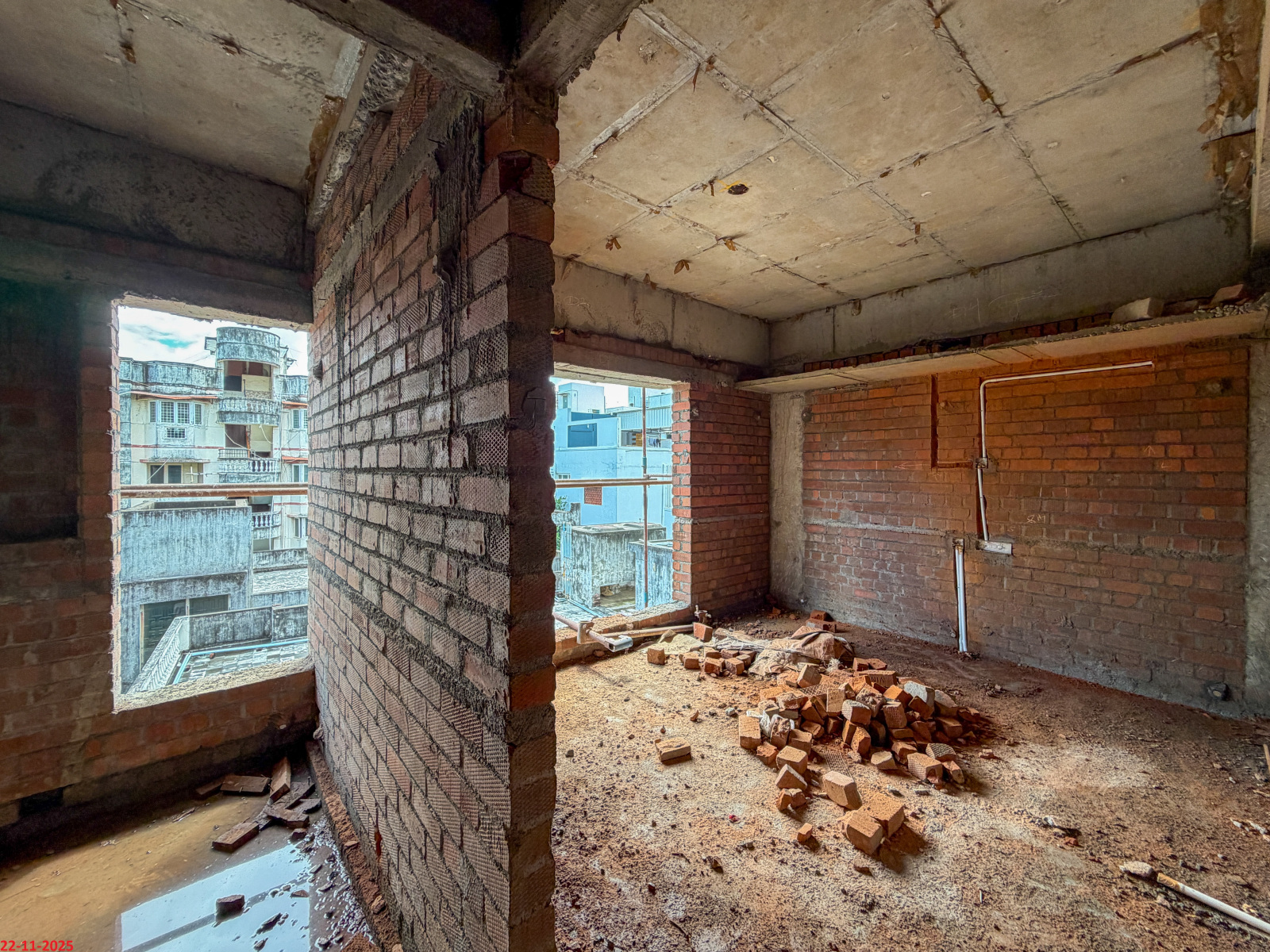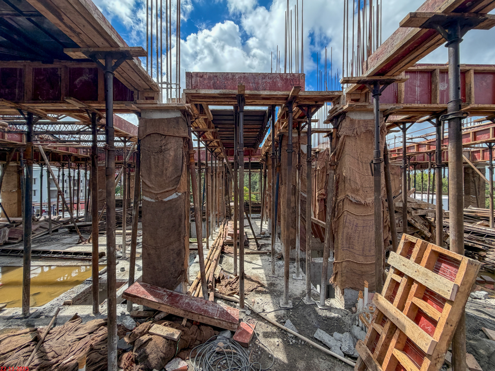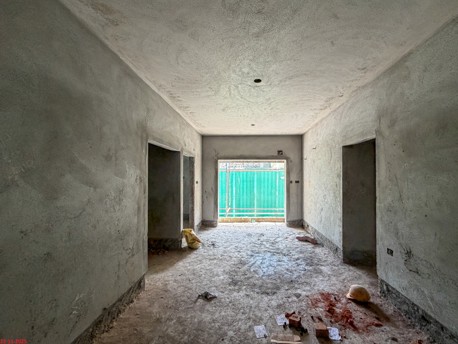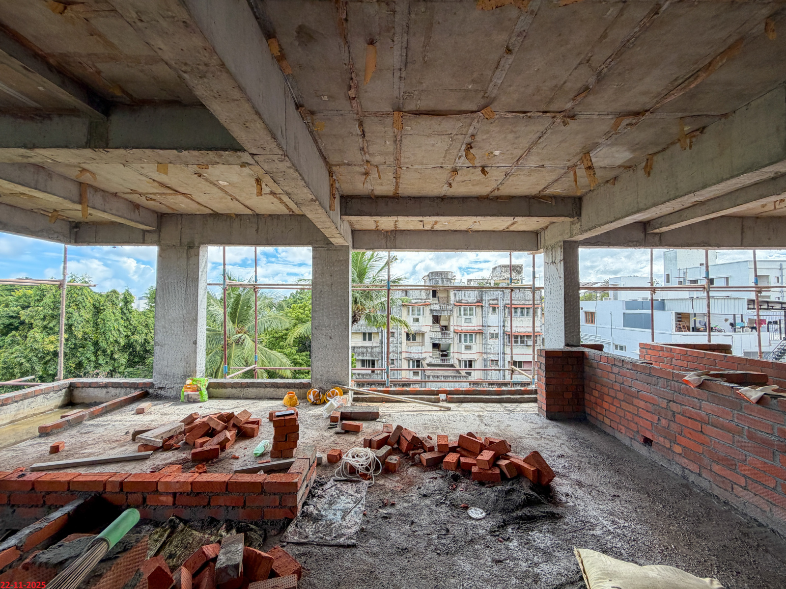 - Basement filling with filling soil, topped and consolidated with 6” inches of M. Sand and 6” inches of P.C.C with a mix ratio of 1:4:8.