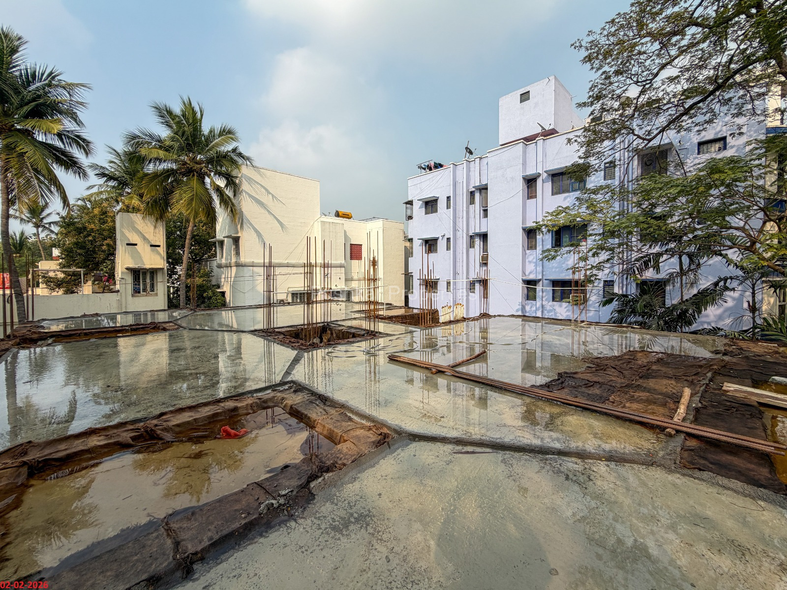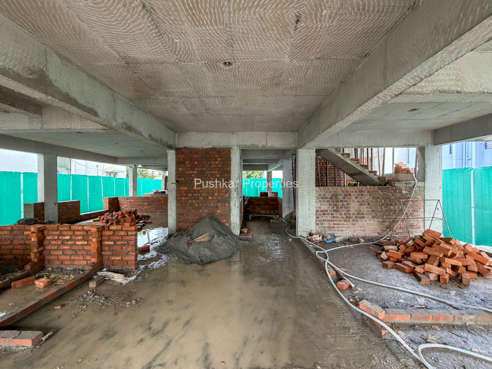 - Basement filling with filling soil, topped and consolidated with 6” inches of M. Sand and 6” inches of P.C.C with a mix ratio of 1:4:8.