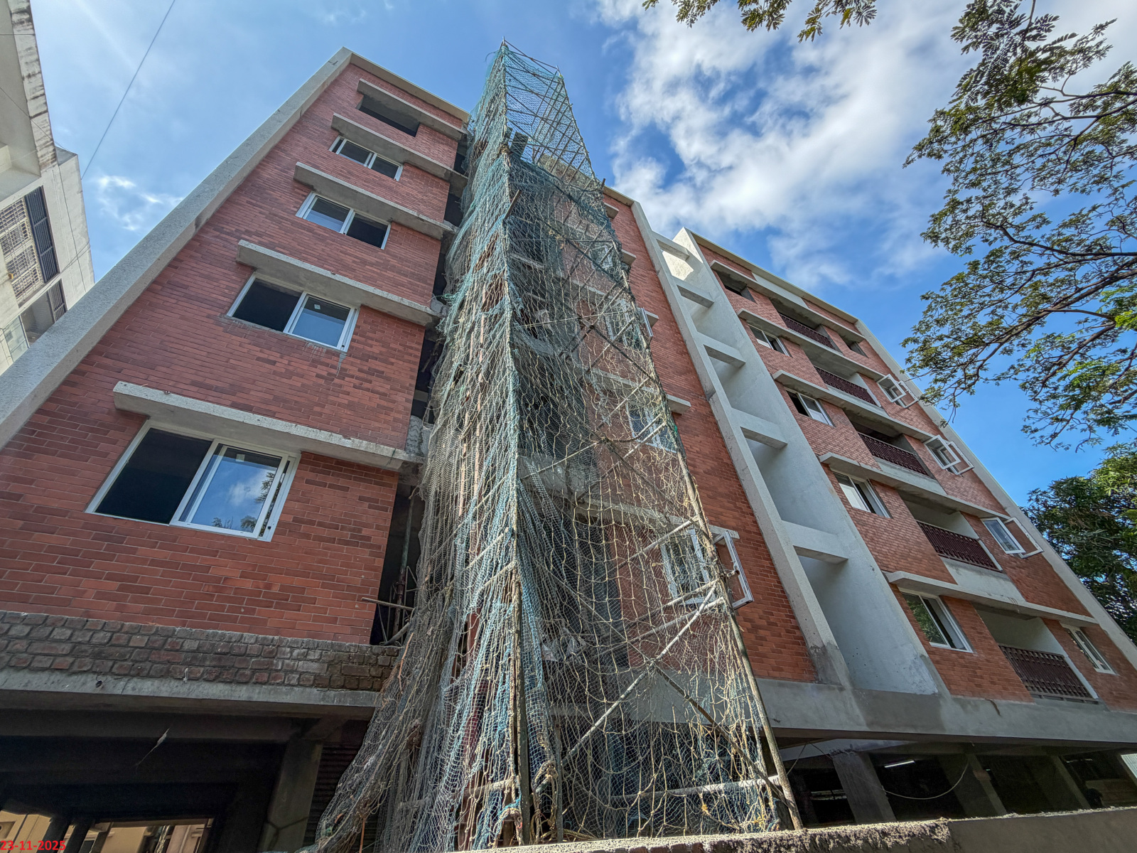 • Basement filling with filling soil, topped and consolidated with 6” inches of M. Sand and 6” inches of P.C.C with a mix ratio of 1:4:8.