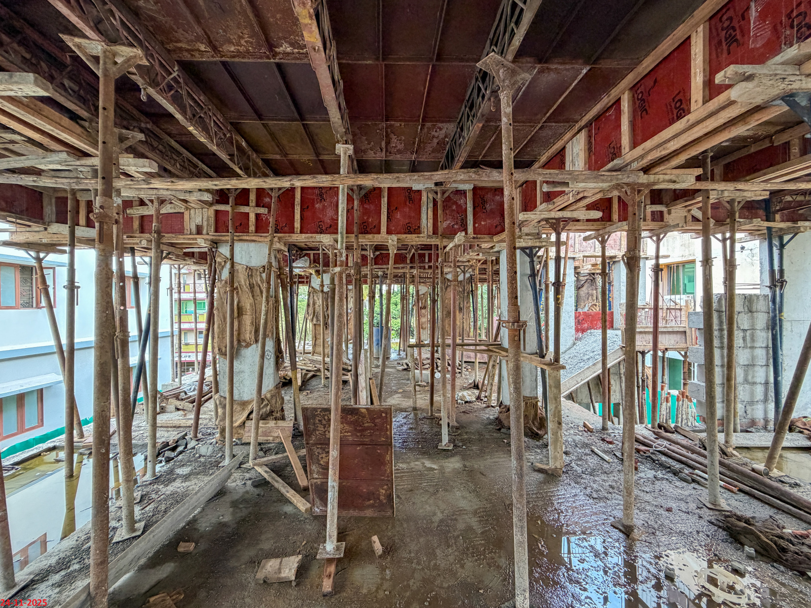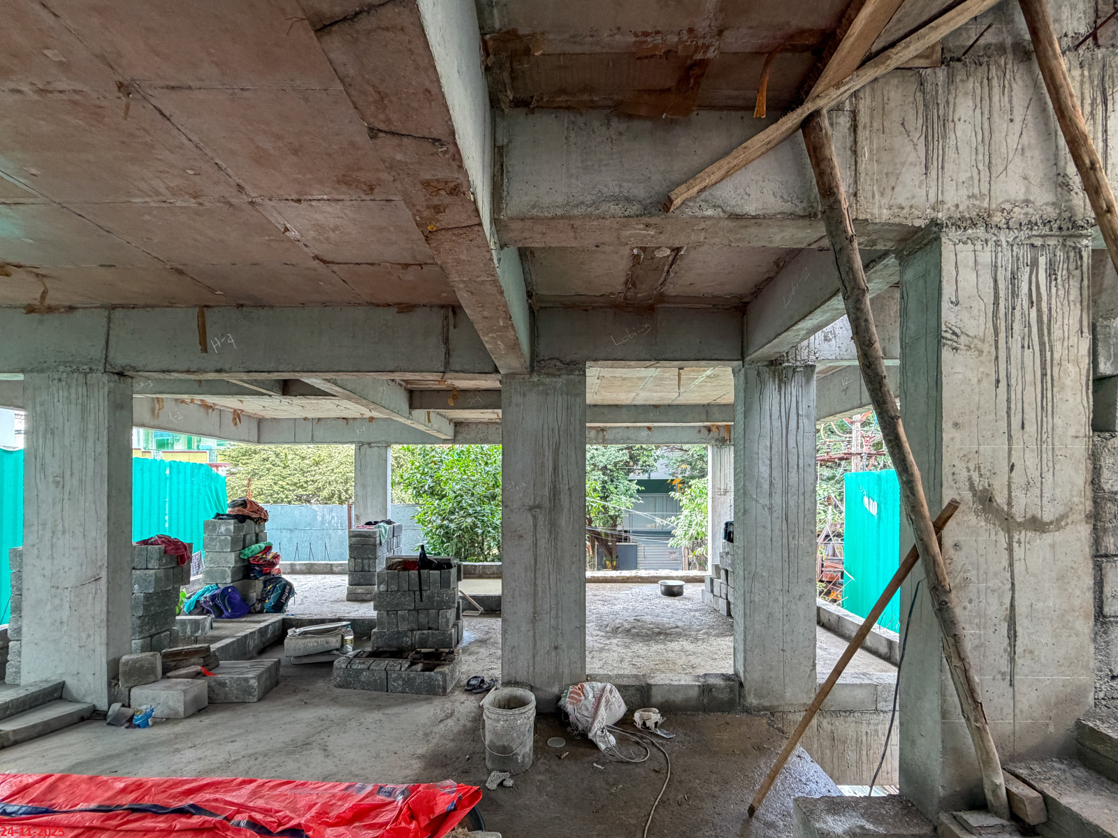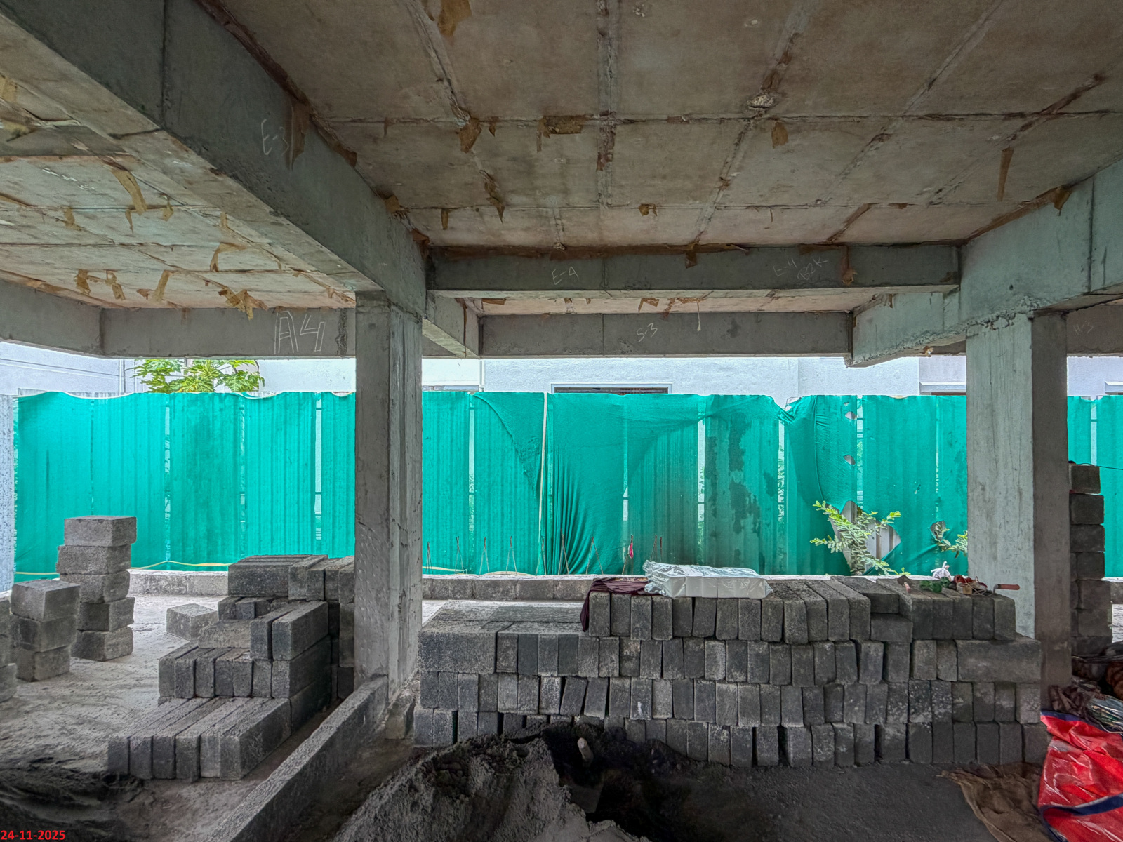 • Basement filling with filling soil, topped and consolidated with 6” inches of M. Sand and 6” inches of P.C.C with a mix ratio of 1:4:8.