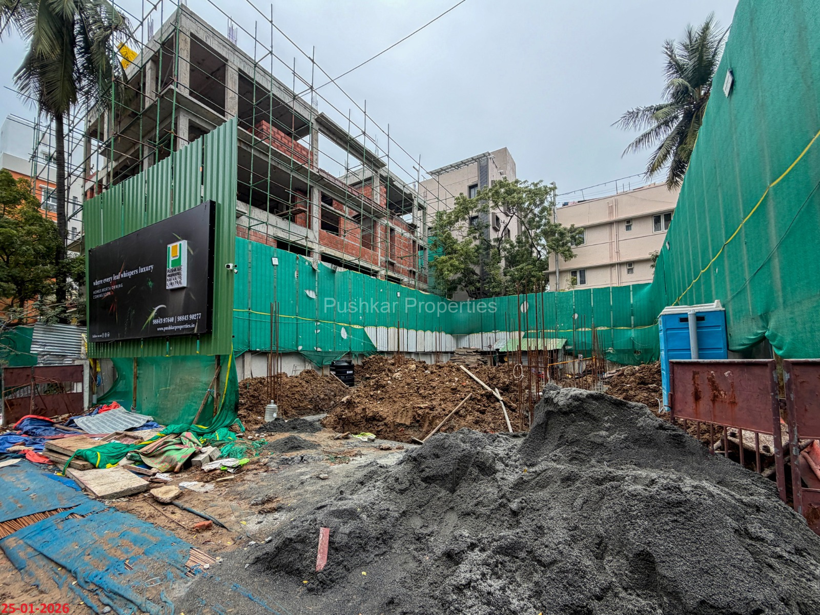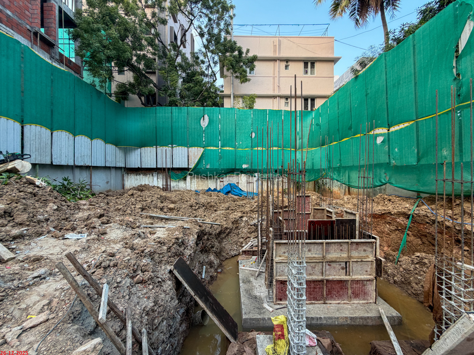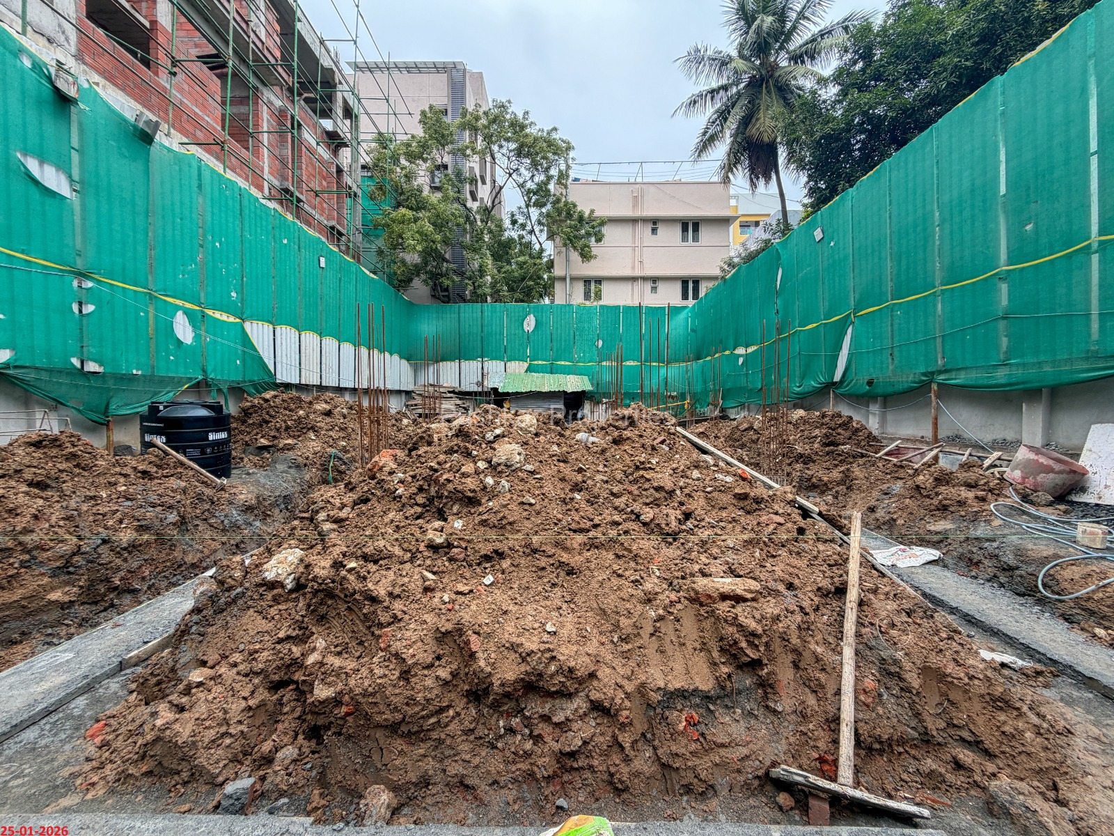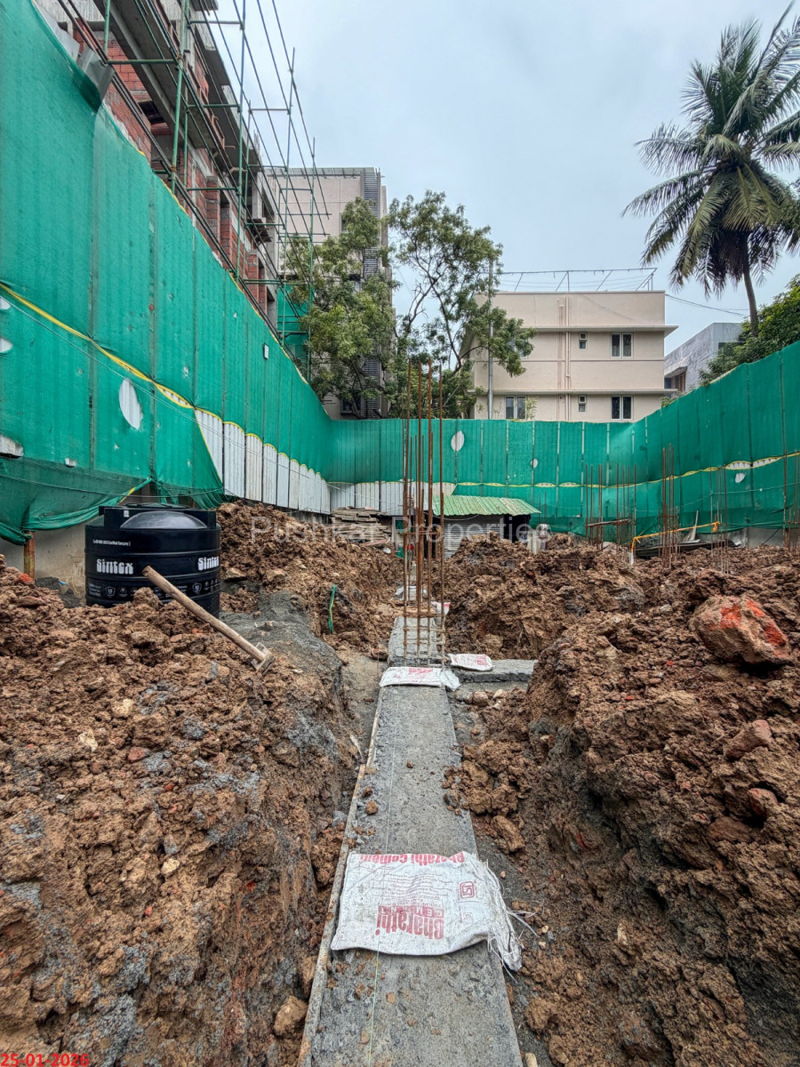 - Basement filling with filling soil, topped and consolidated with 6” inches of M. Sand and 6” inches of P.C.C with a mix ratio of 1:4:8.