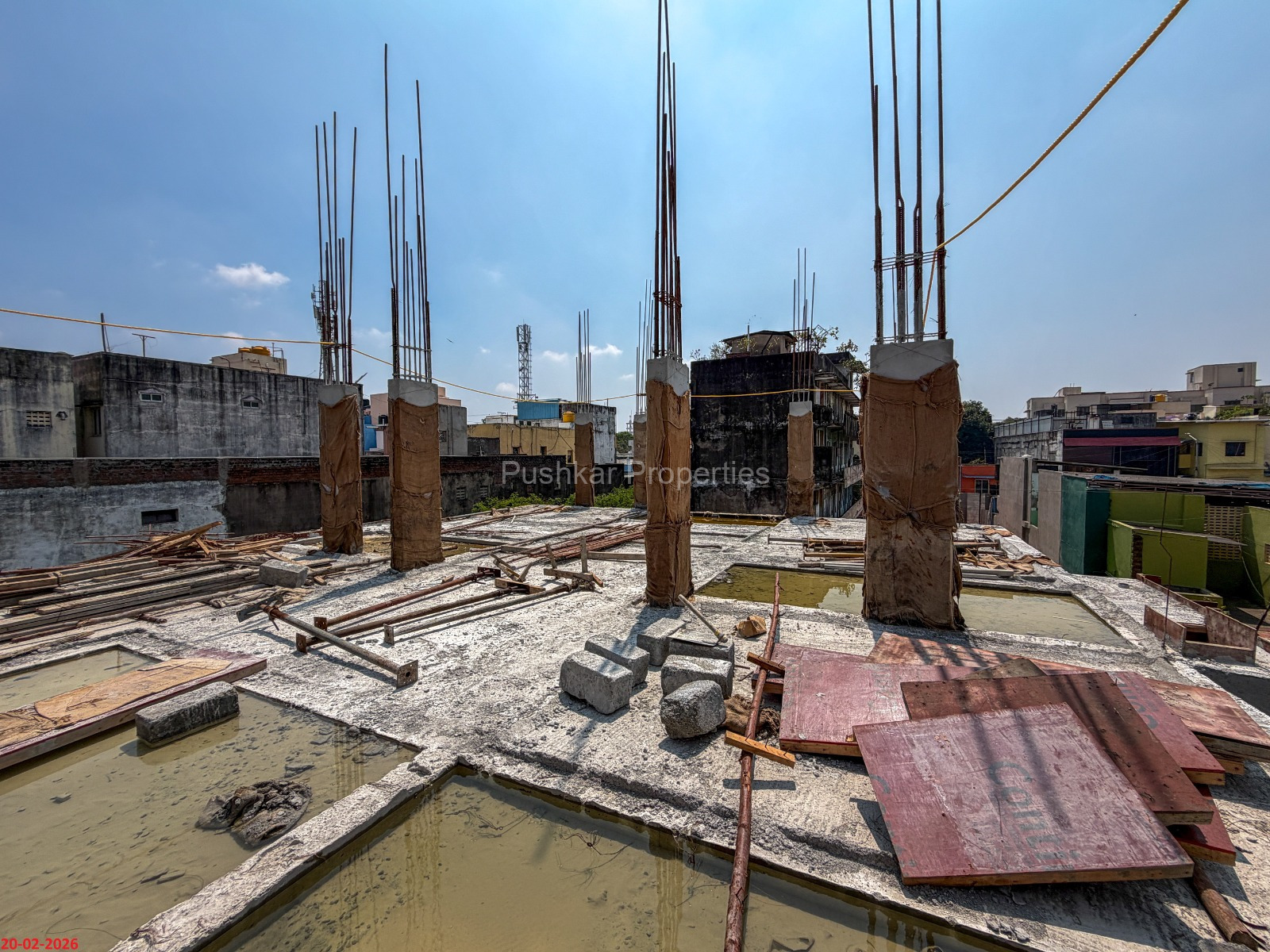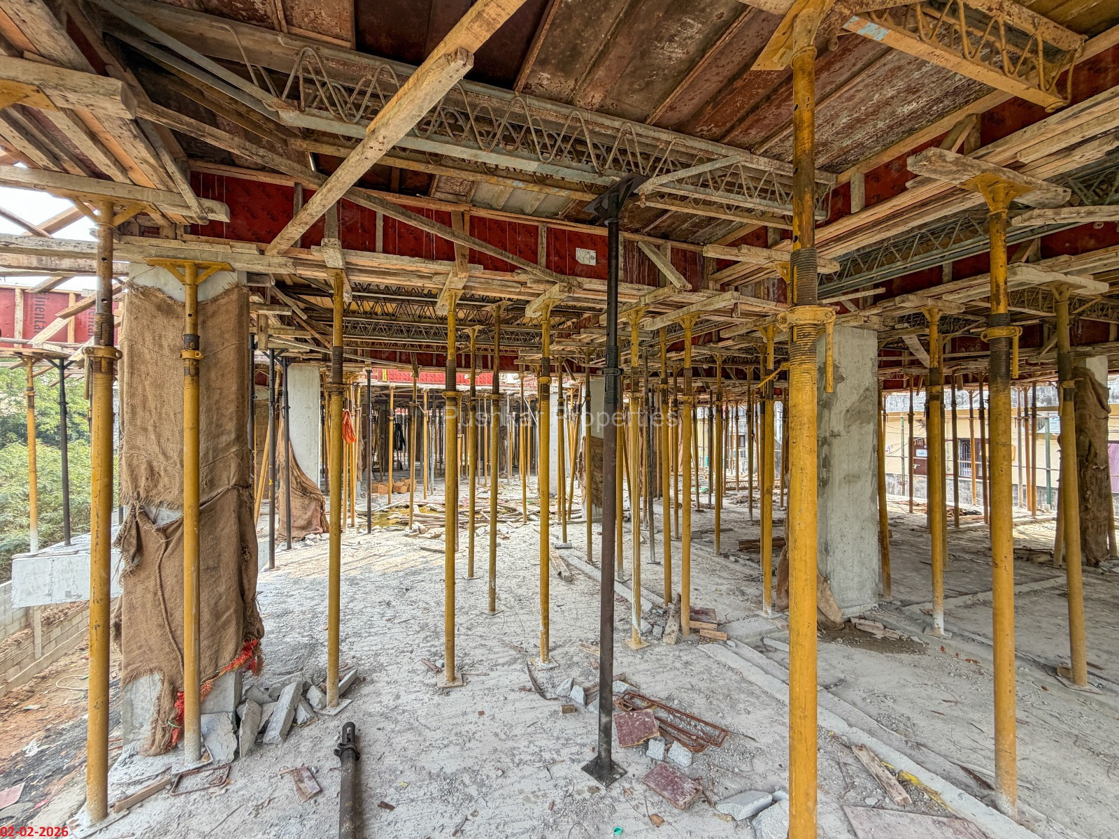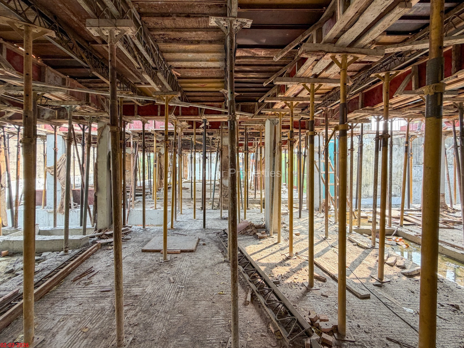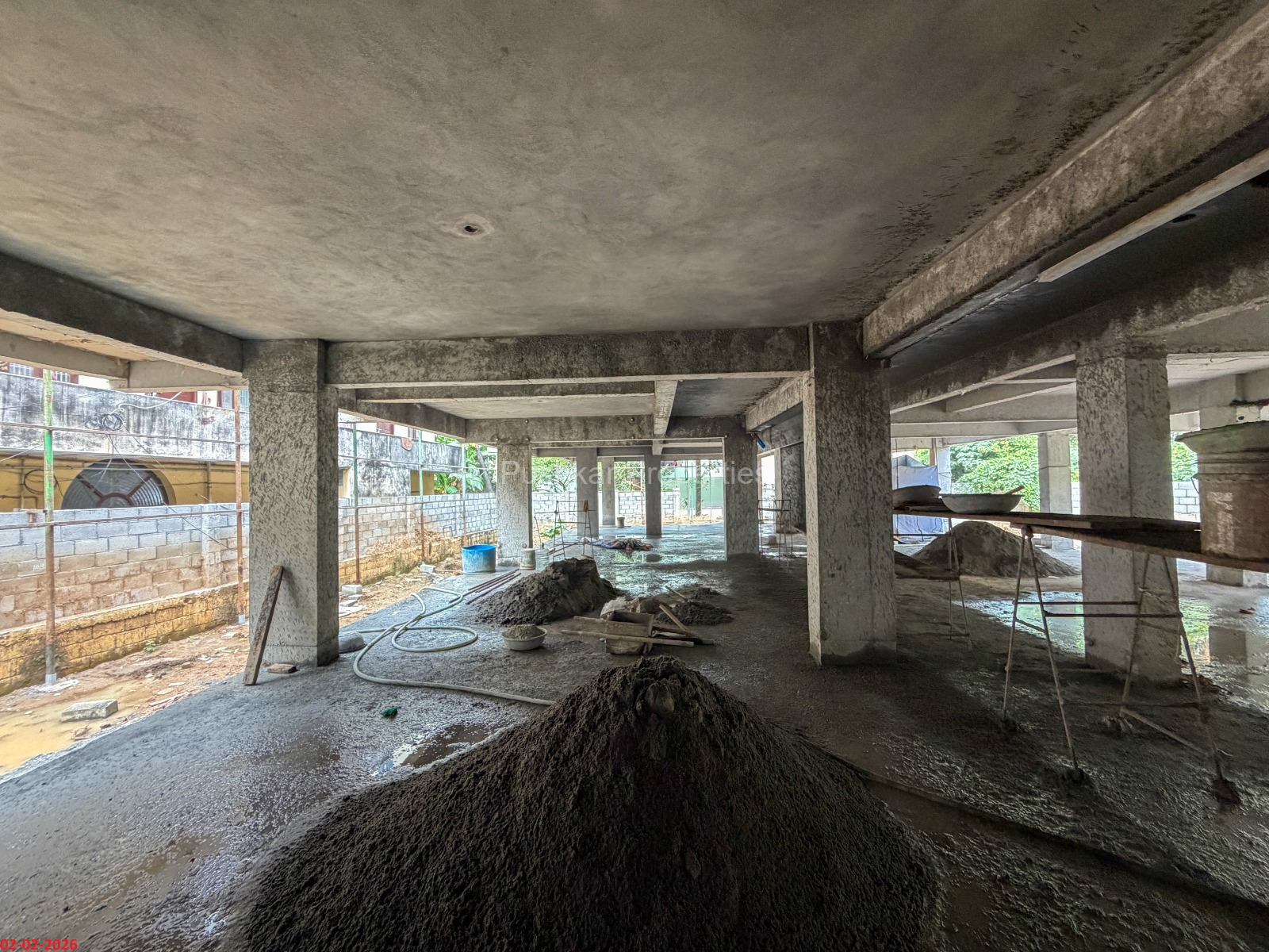 - Basement filling with filling soil, topped and consolidated with 6” inches of M. Sand and 6” inches of P.C.C with a mix ratio of 1:4:8.