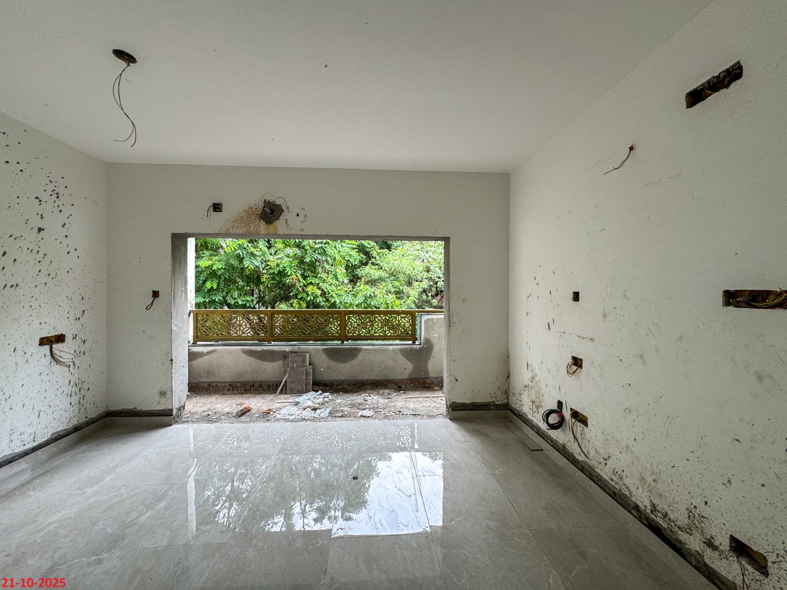 - Main entrance door of size 8’x4’ – Teak Wood Frame & 43mm Shutters with natural walnut veneered solid panel shutter.