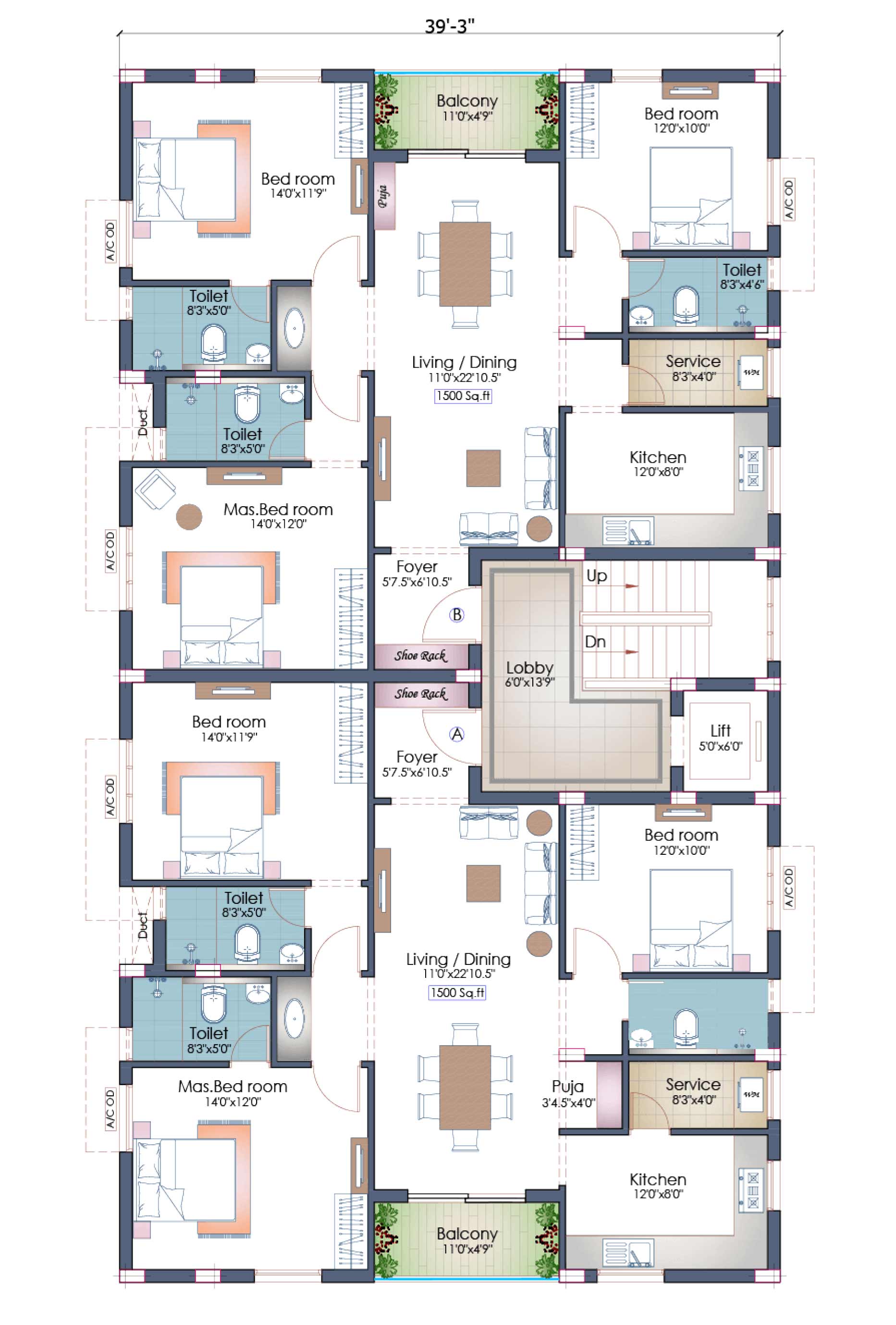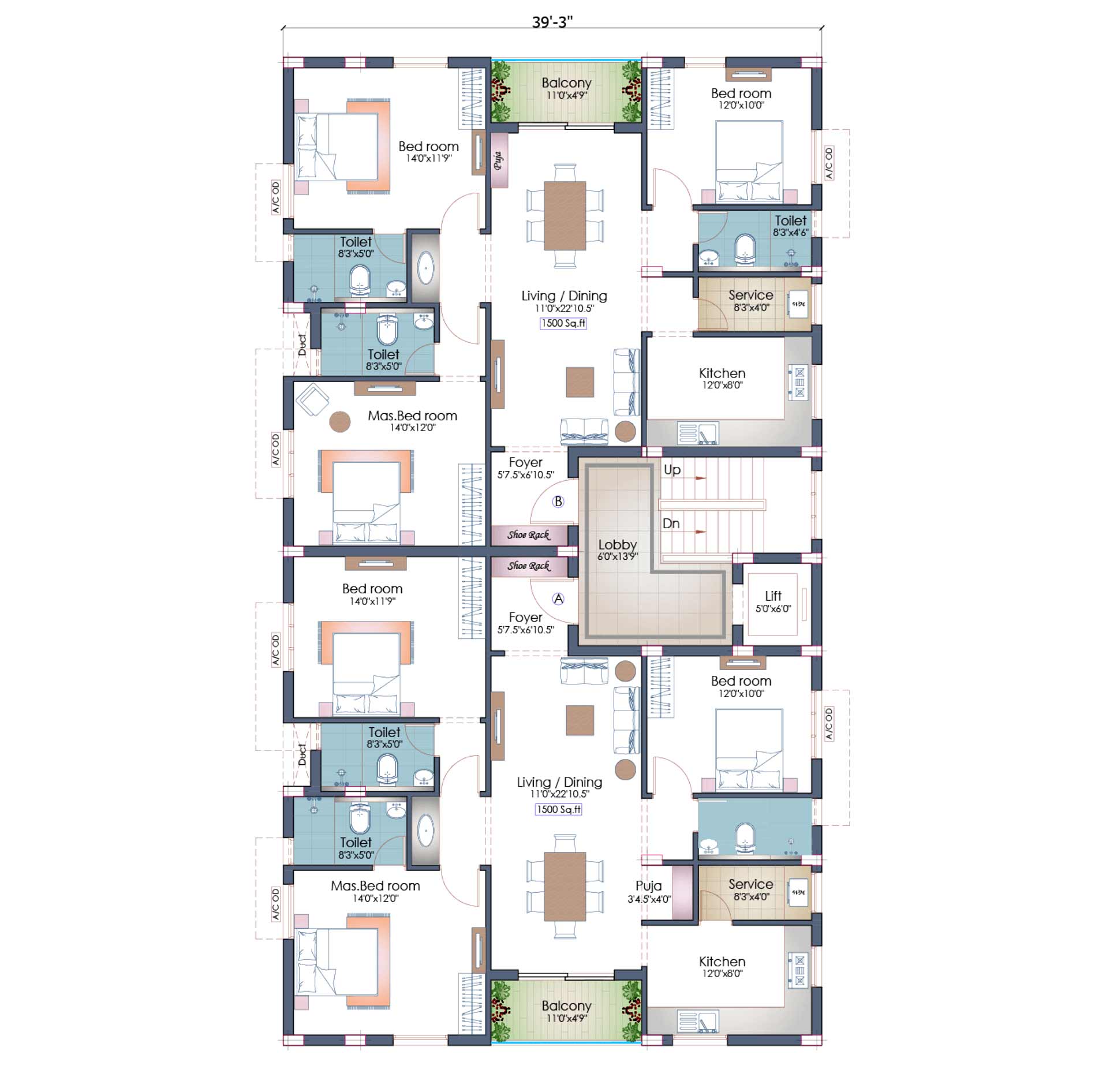 | 2-B | 1500 sq. ft. | Sold | East |