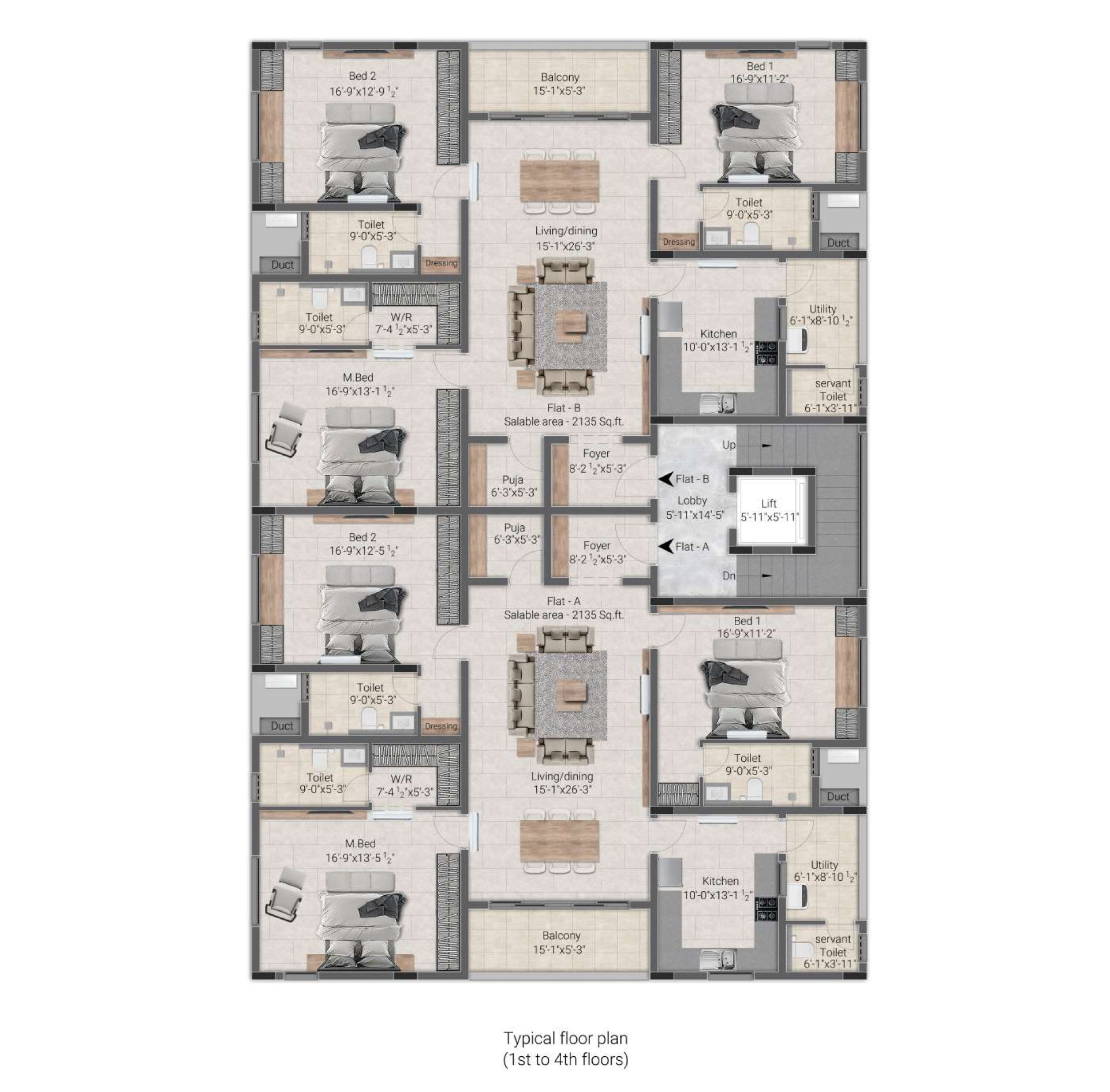 TYPICAL FLOOR PLAN 1st, 2nd, 3rd, 4th & 5th Floor