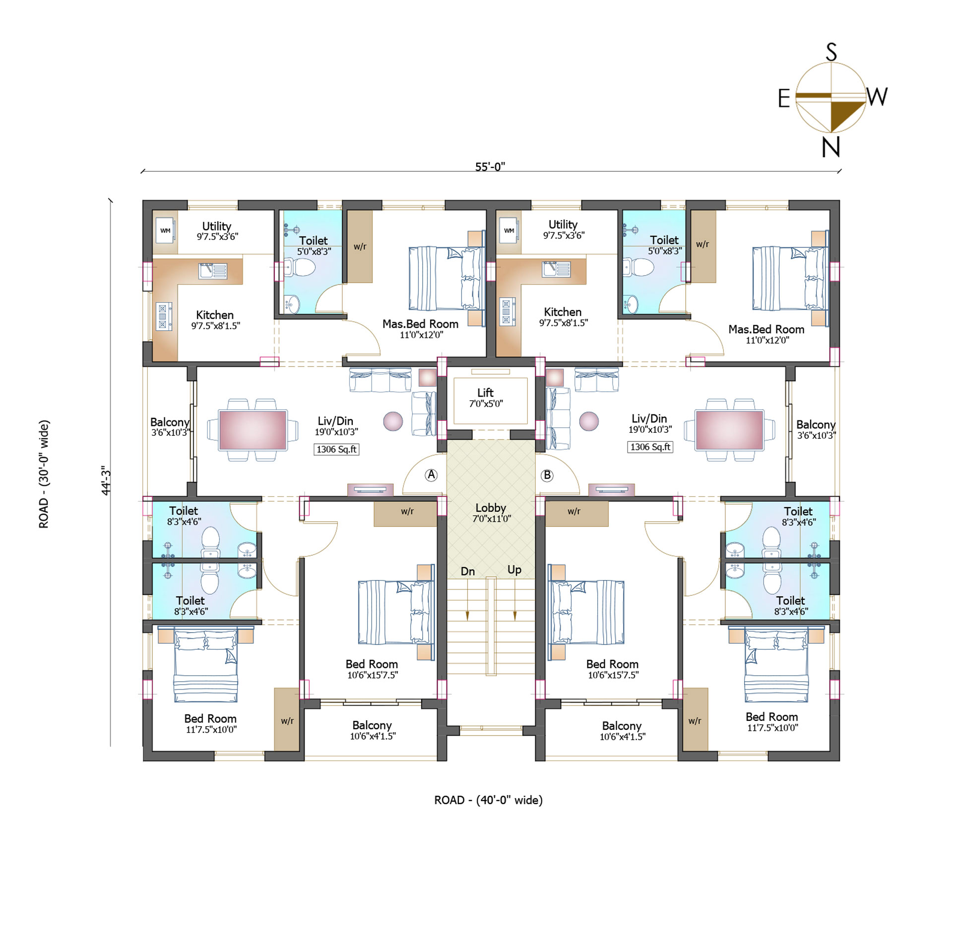 | 4-B | 1306 sq. ft. | Sold | East |