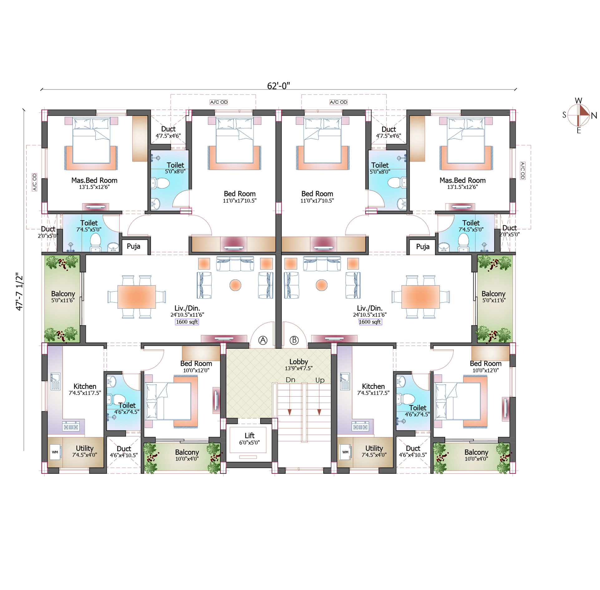 | 5-A | 1600 sq. ft. | Sold | East |